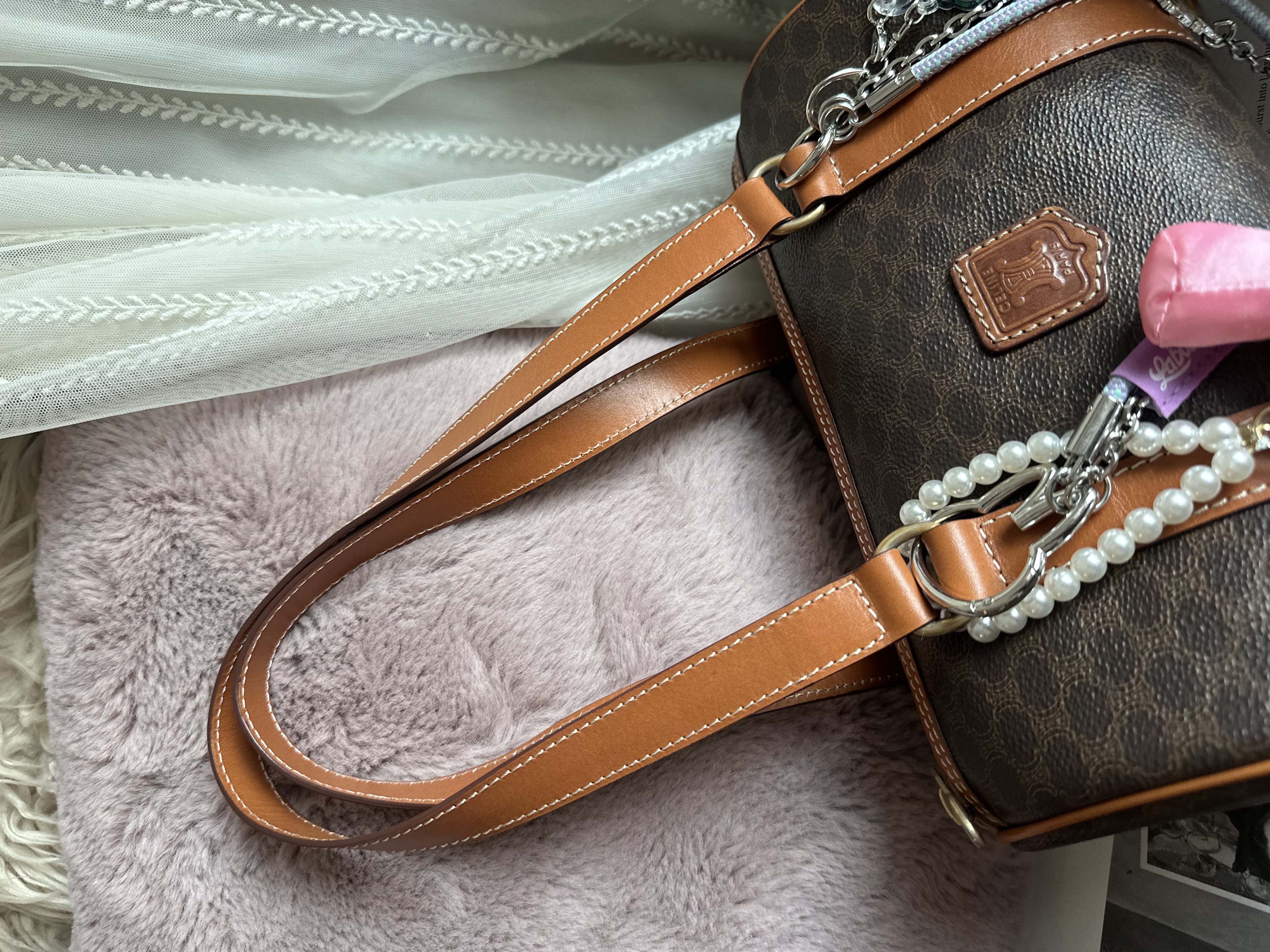 接近閑置vintage celine brown macadam triomphe shoulder bag