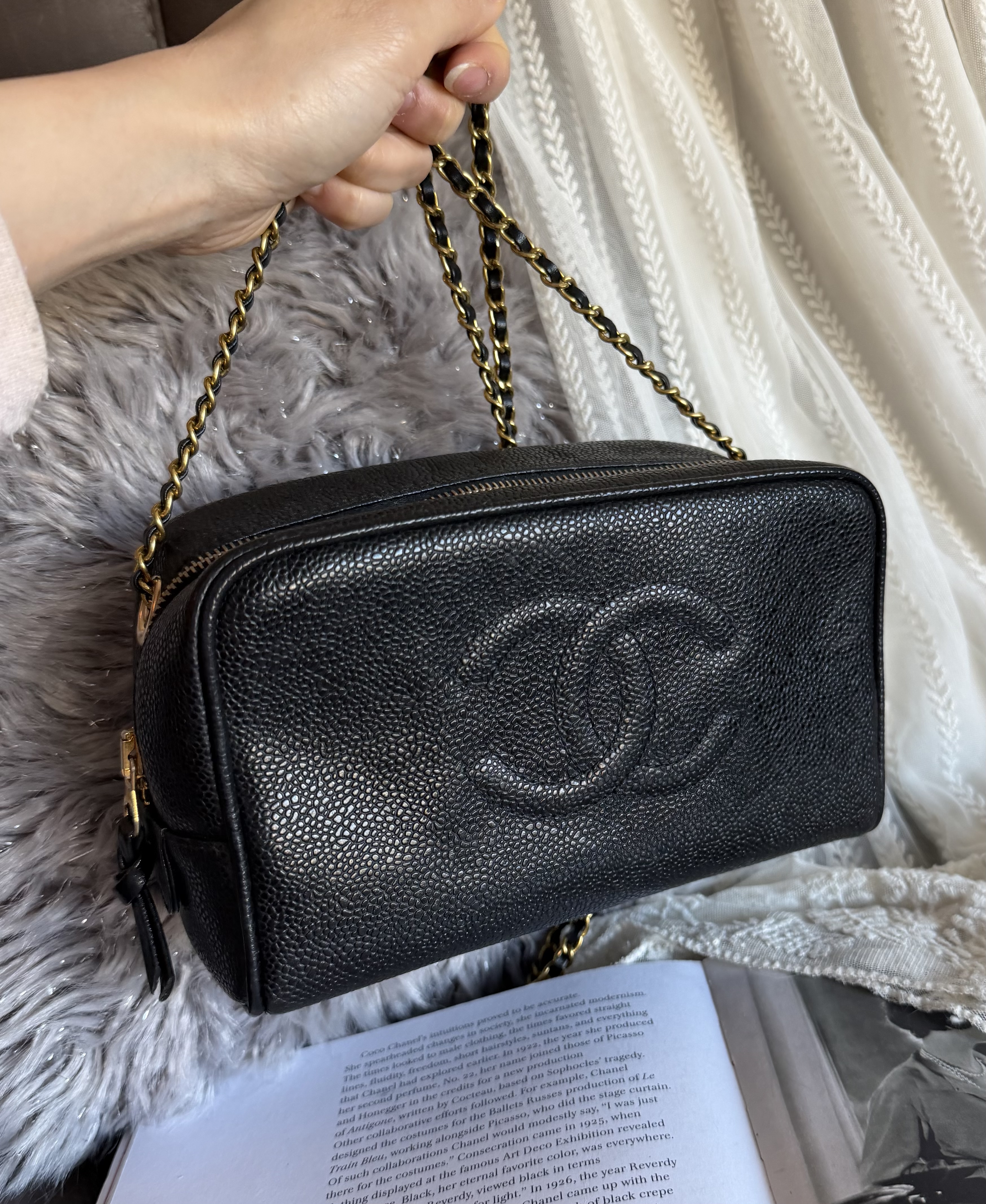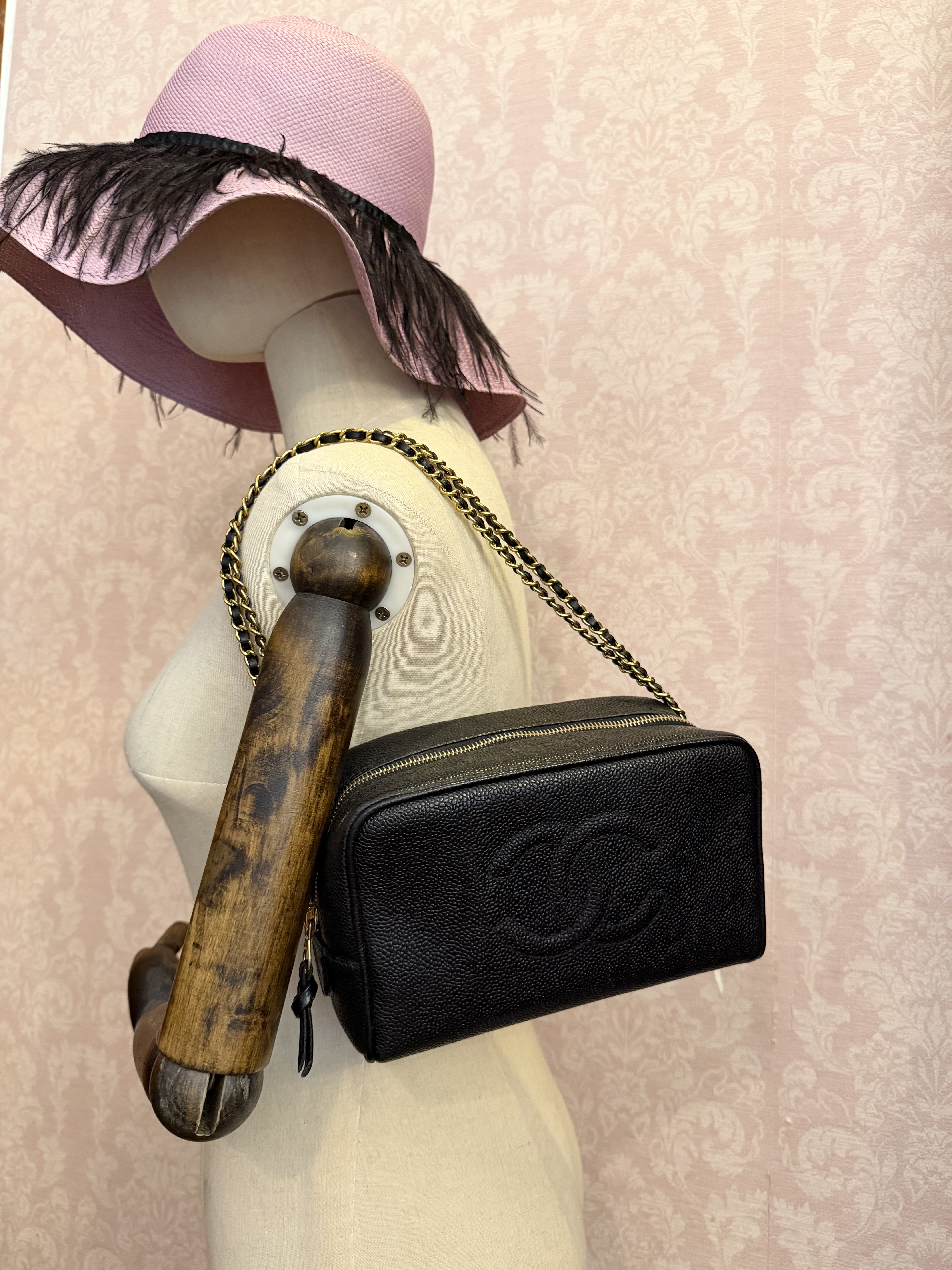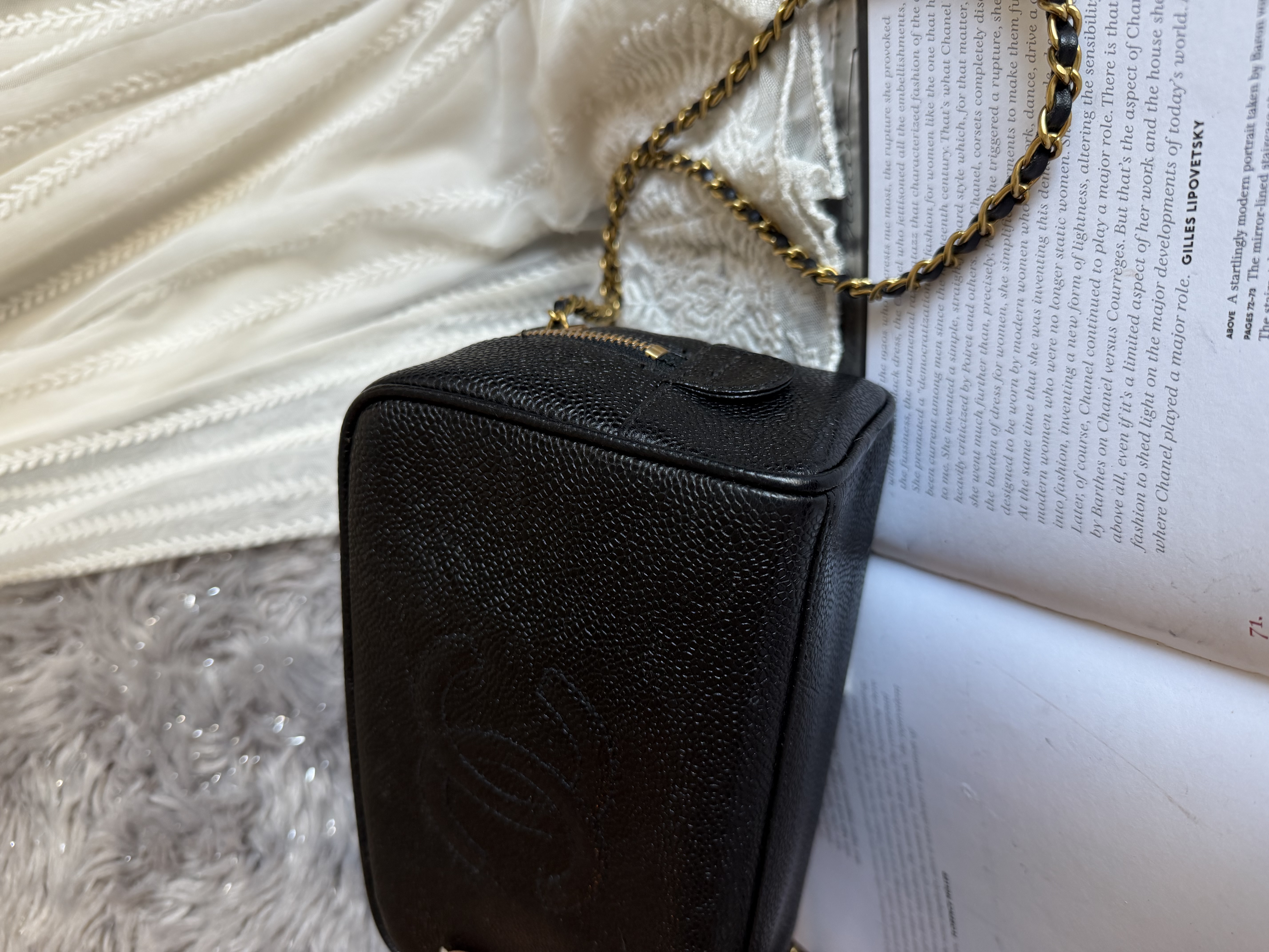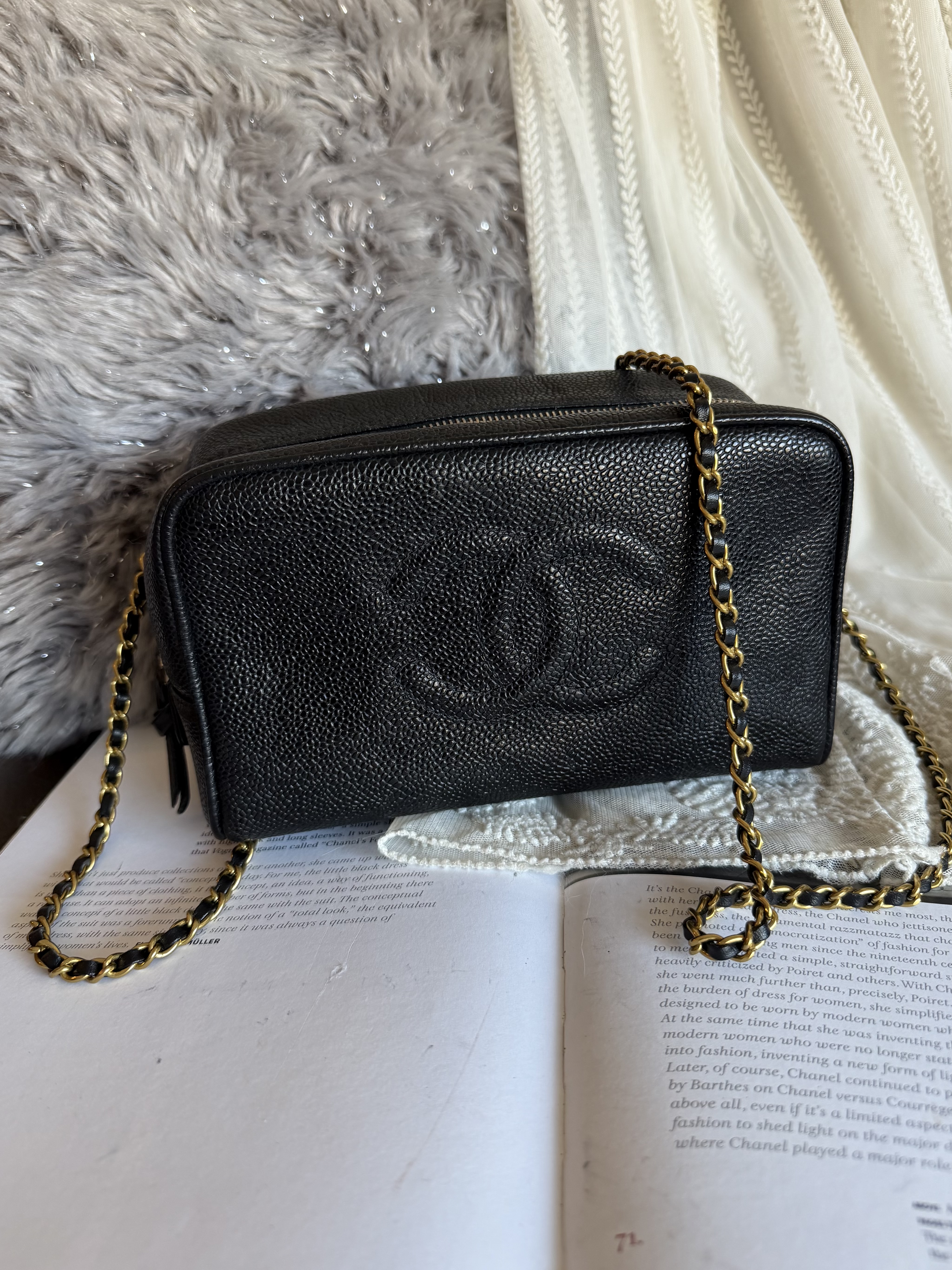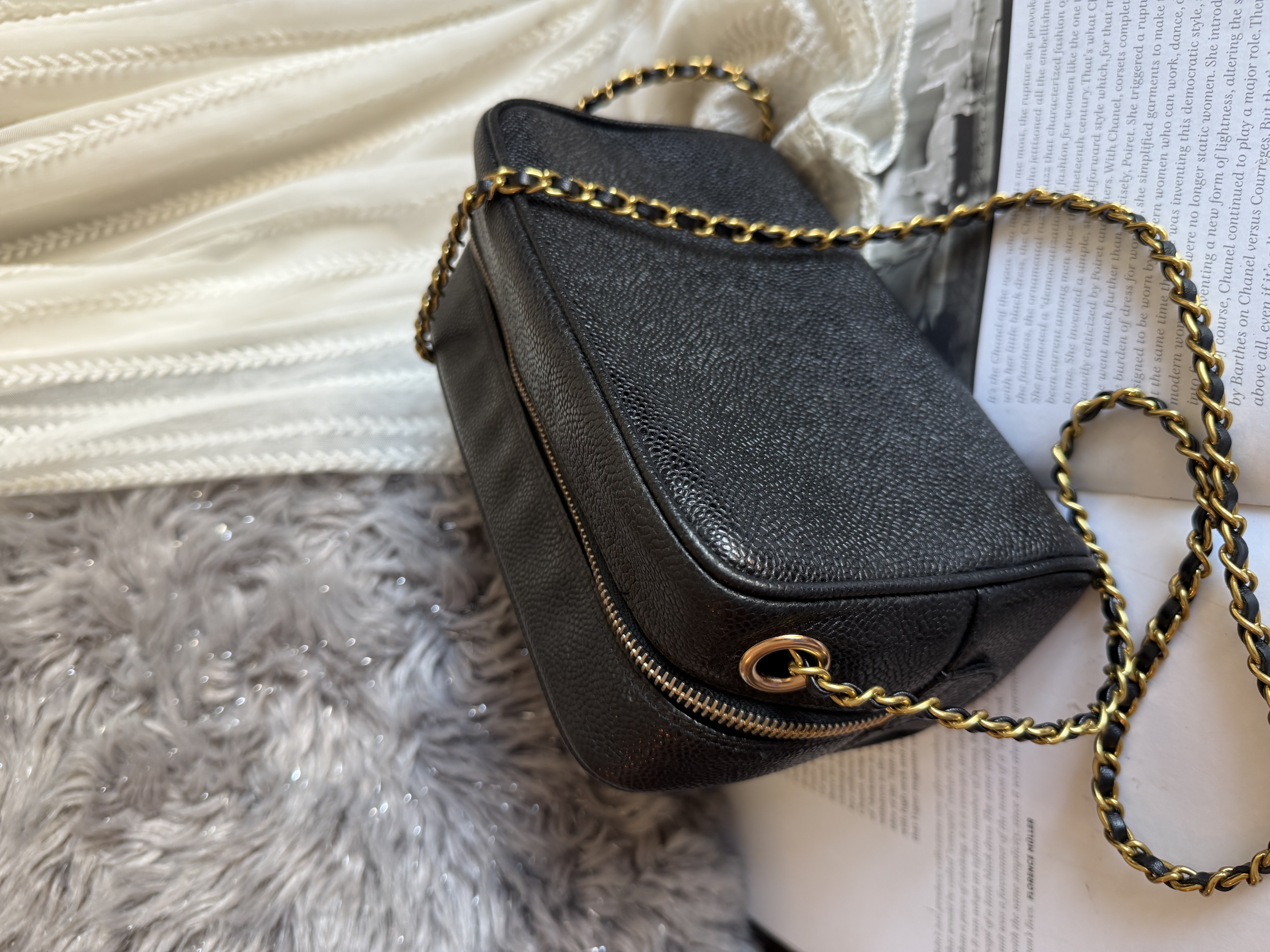 外觀接近閑置 vintage chanel cc black caviar vanity bag
