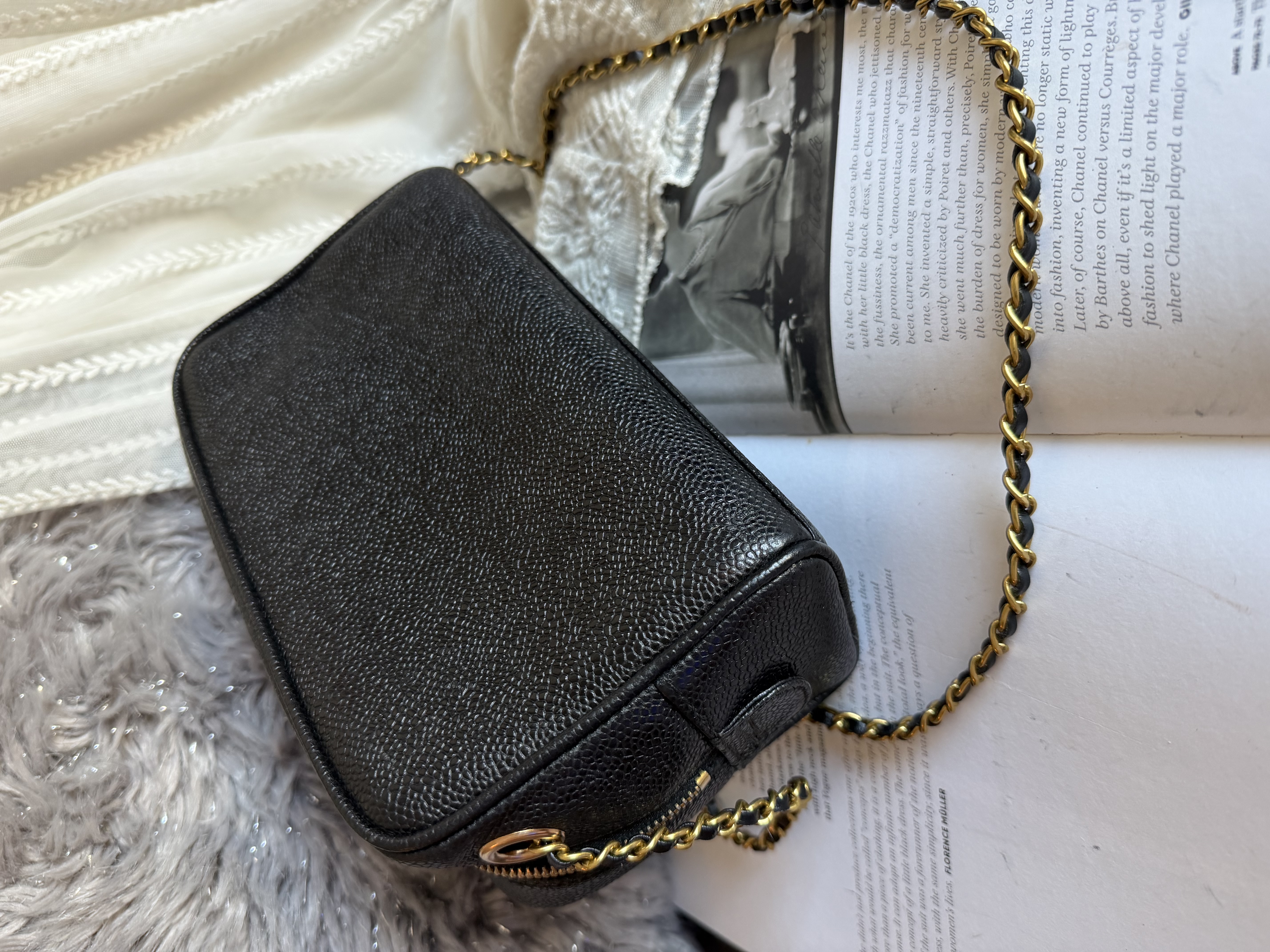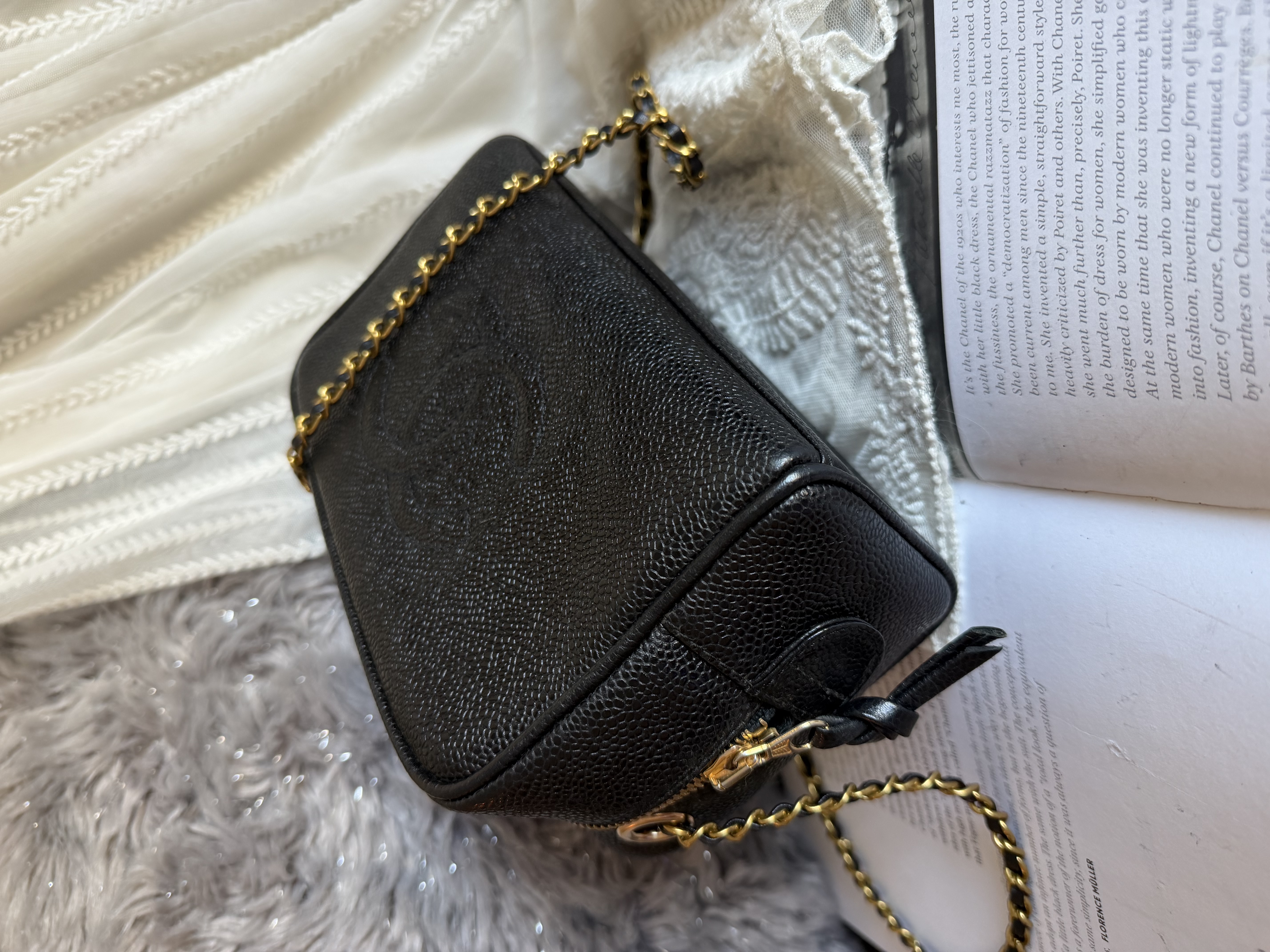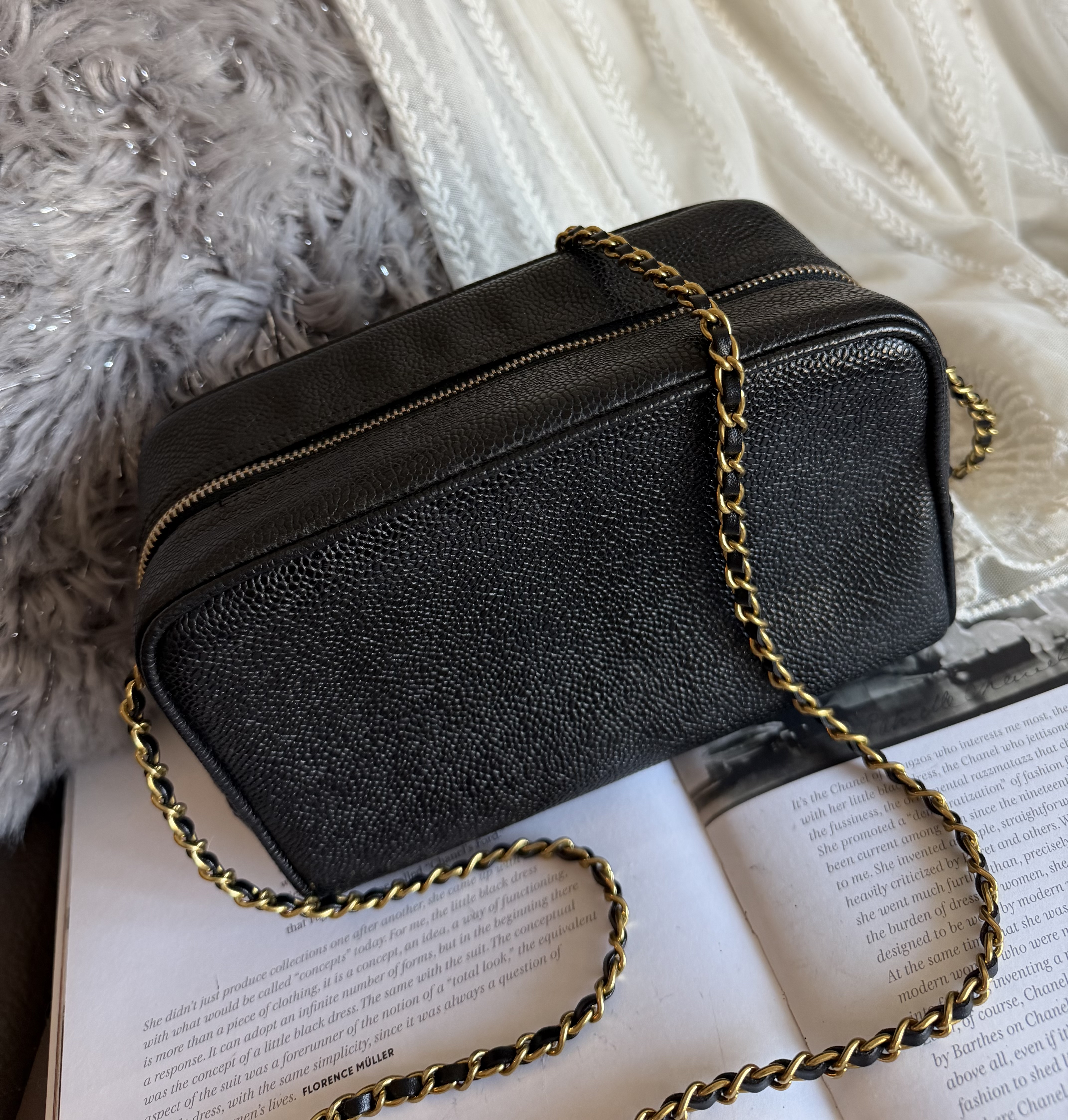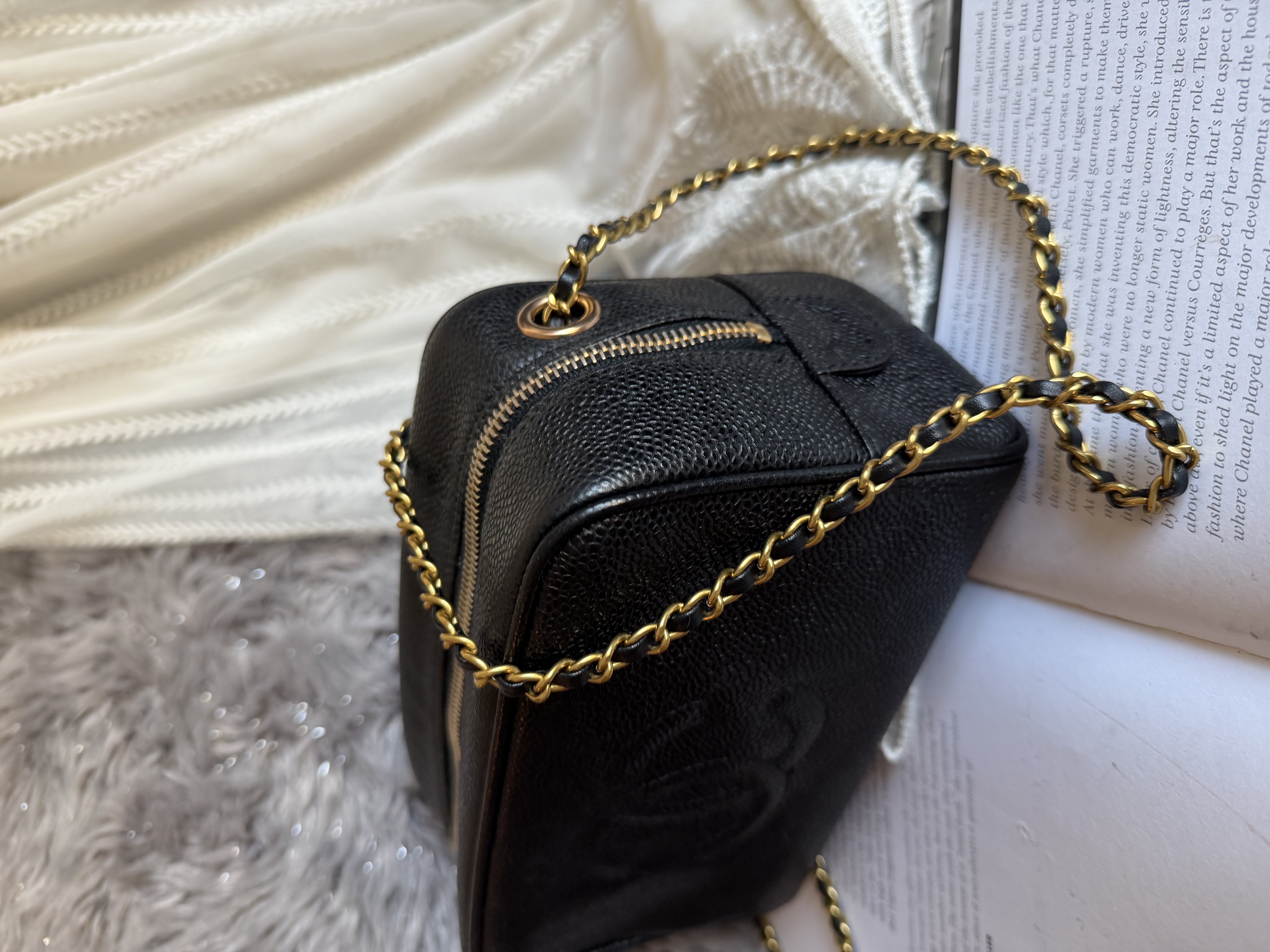 外觀接近閑置 vintage chanel cc black caviar vanity bag