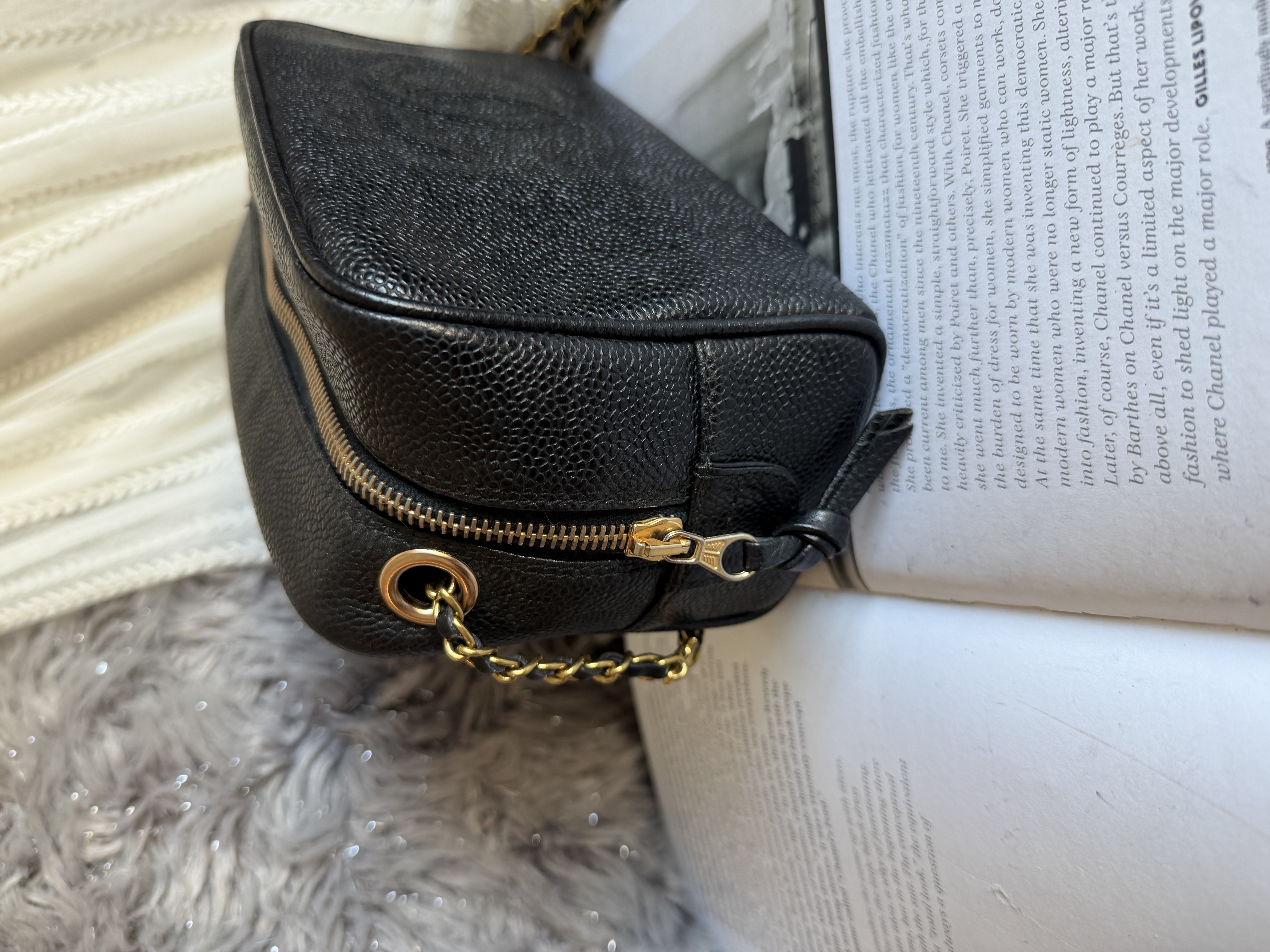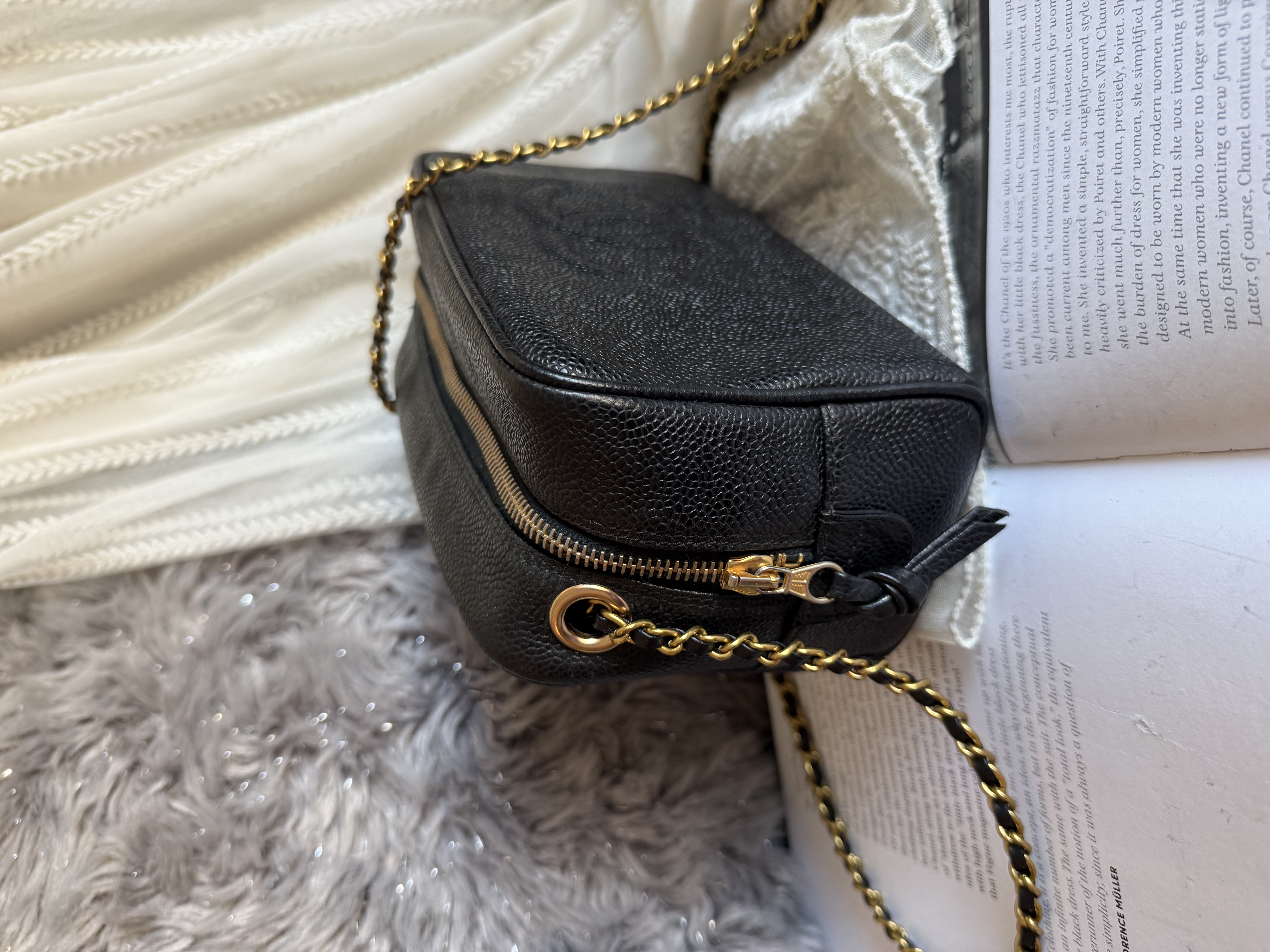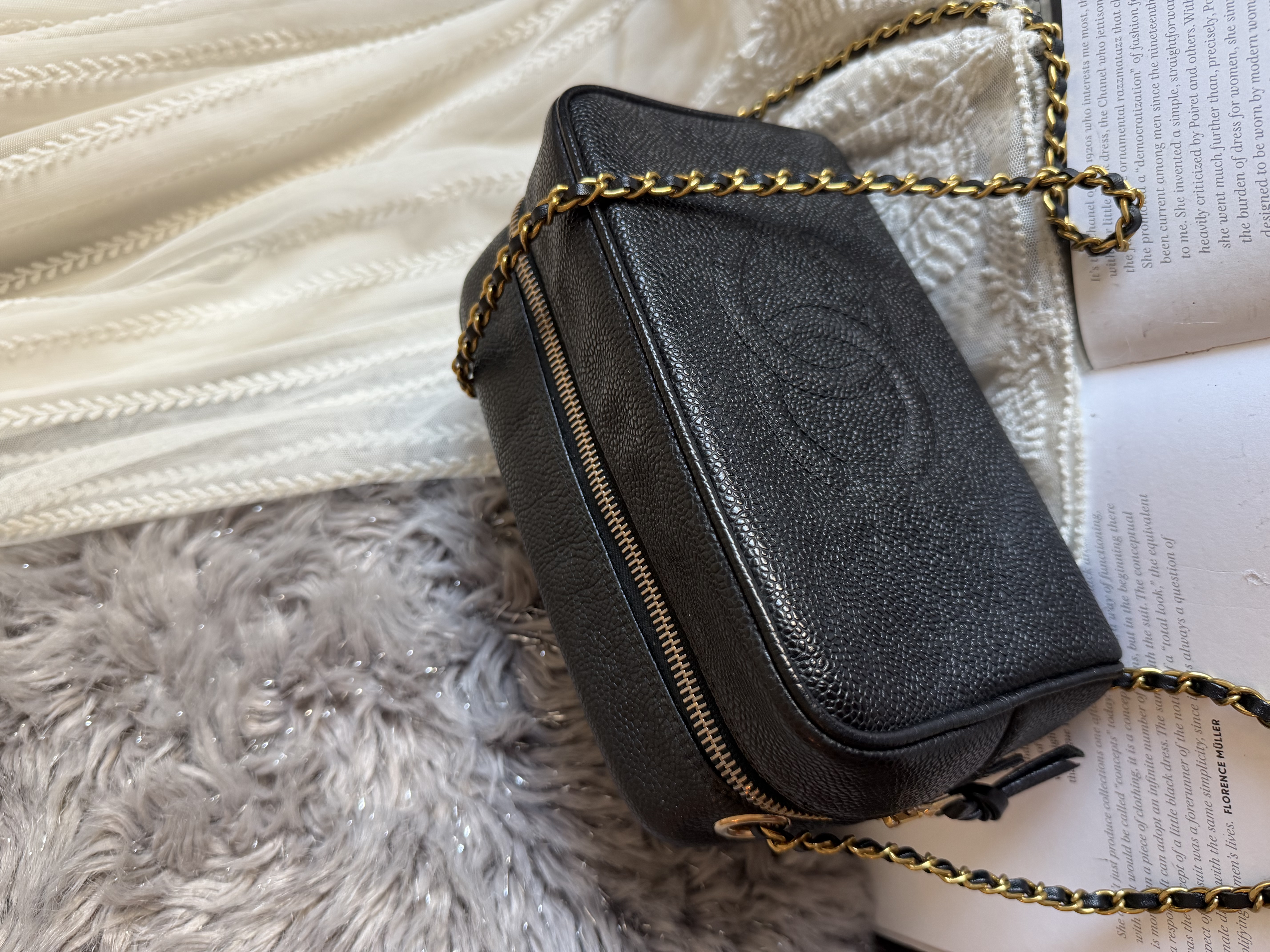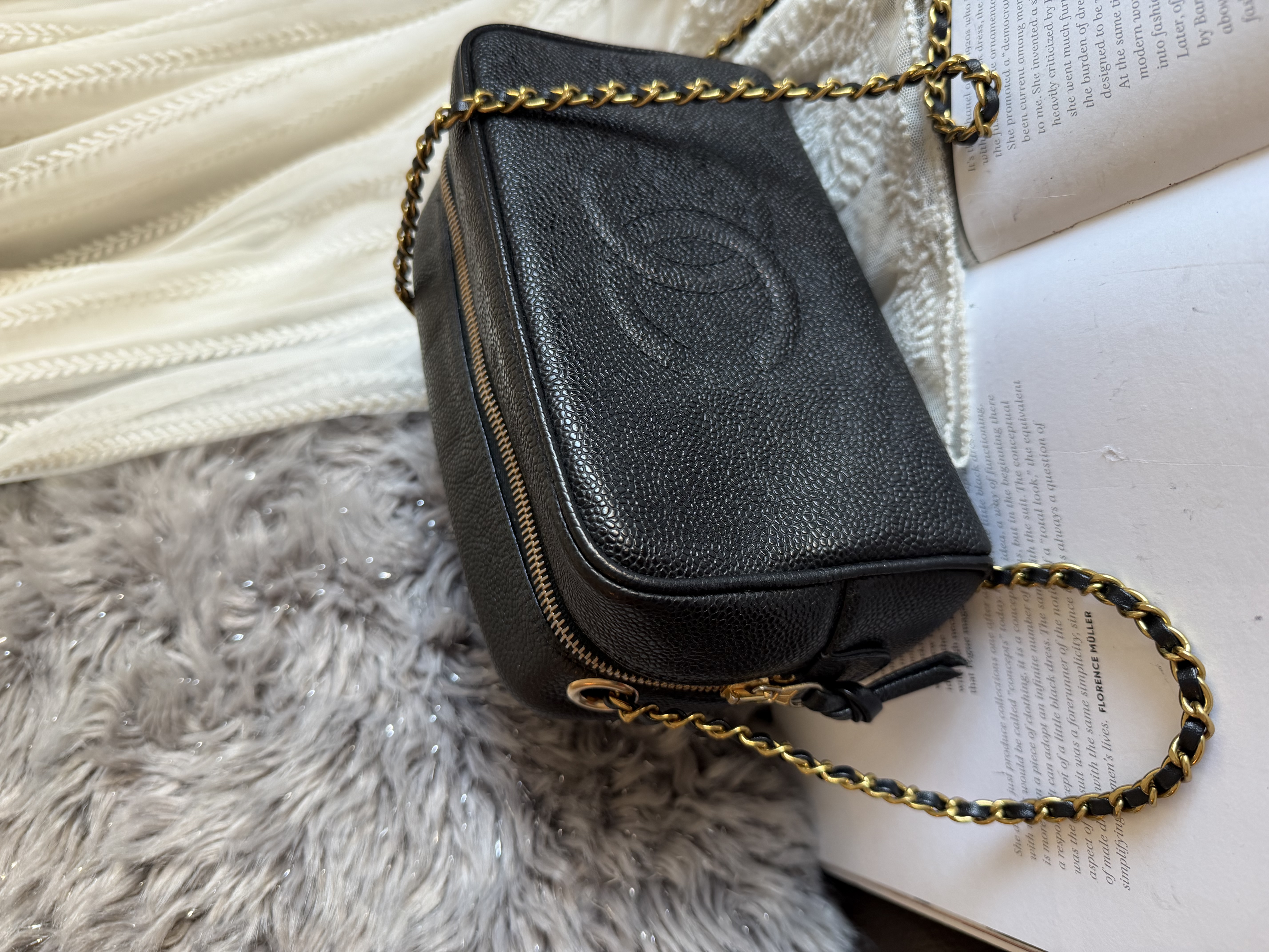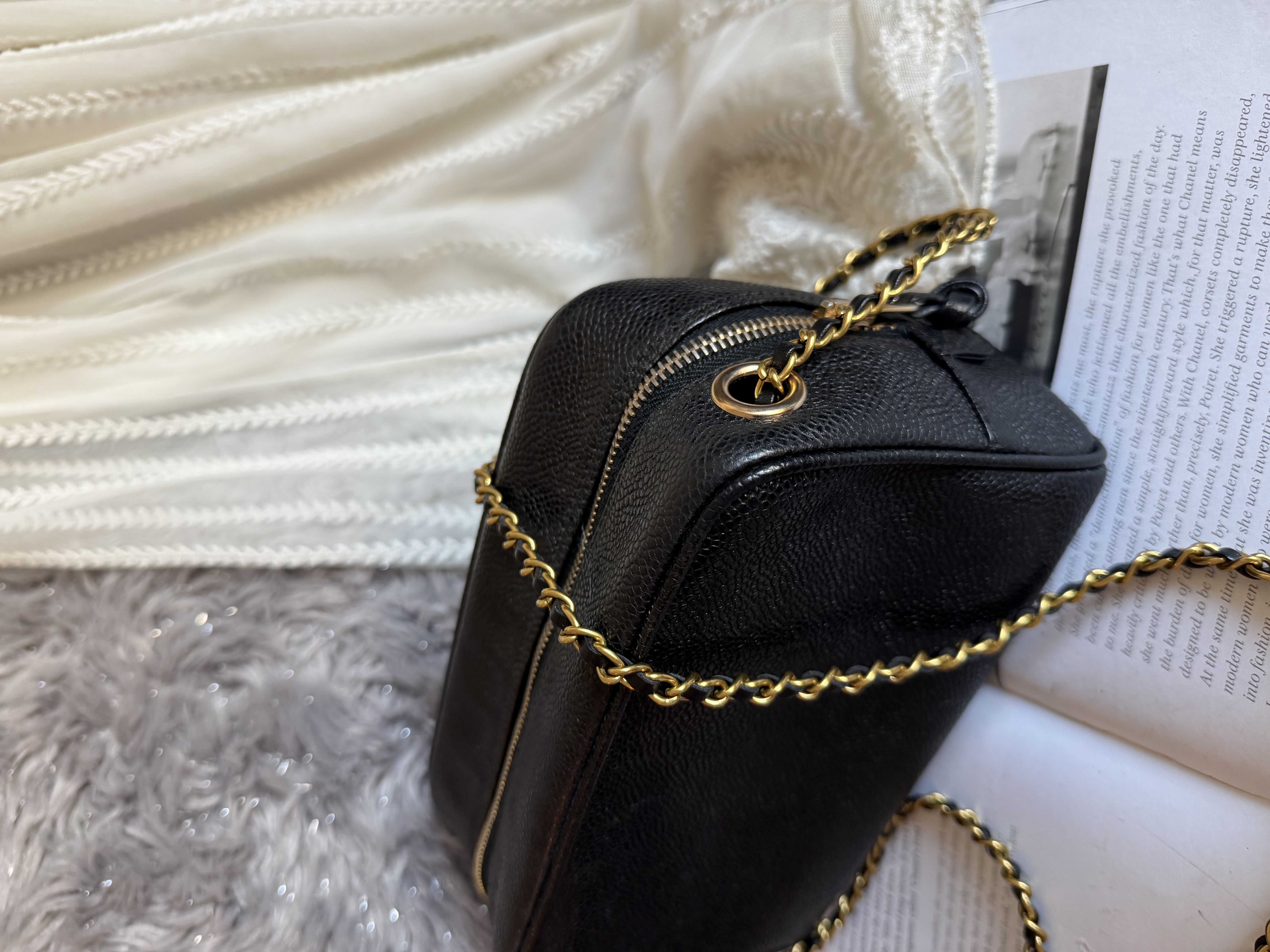 外觀接近閑置 vintage chanel cc black caviar vanity bag