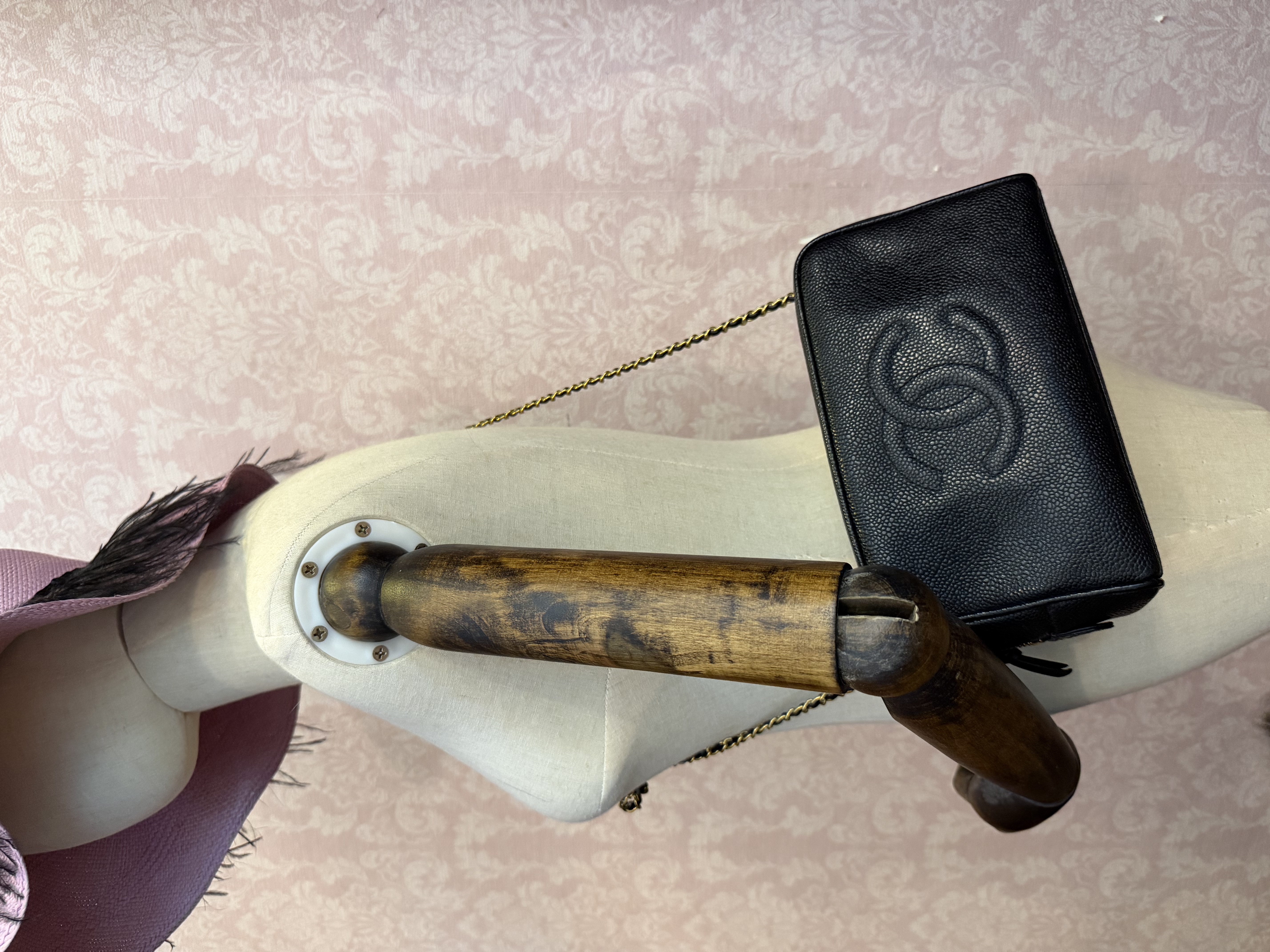 vintage chanel cc small black caviar vanity bag