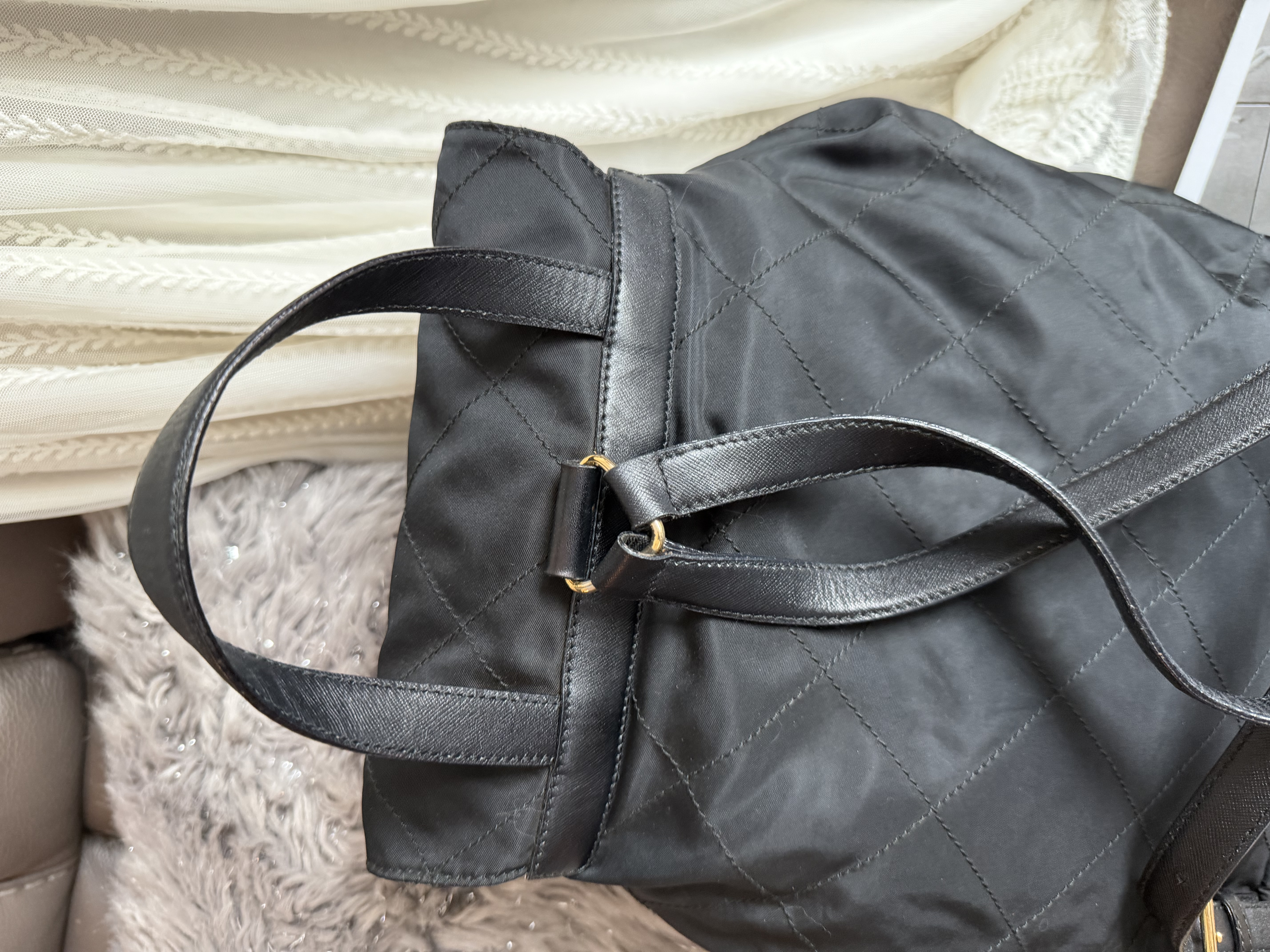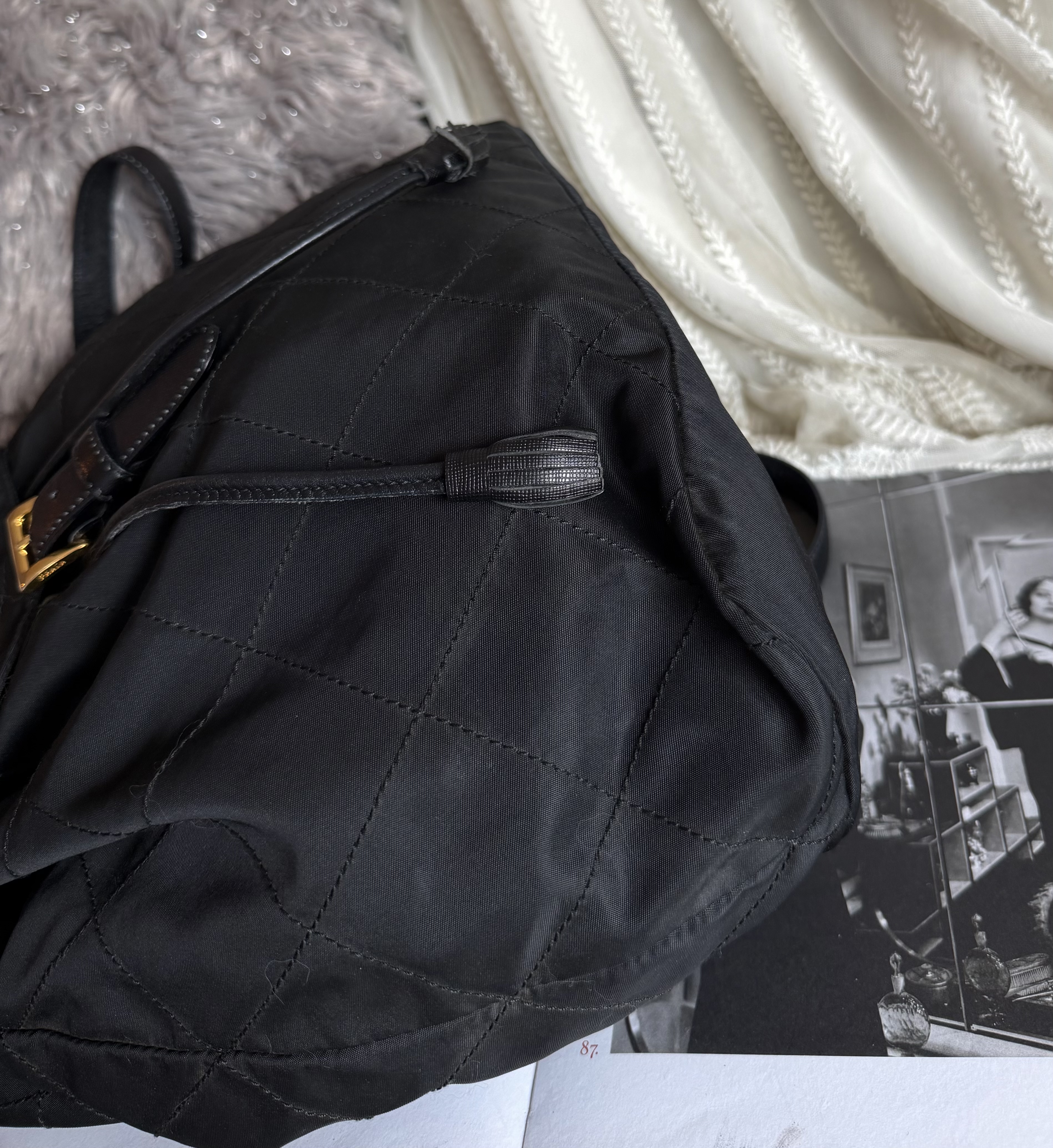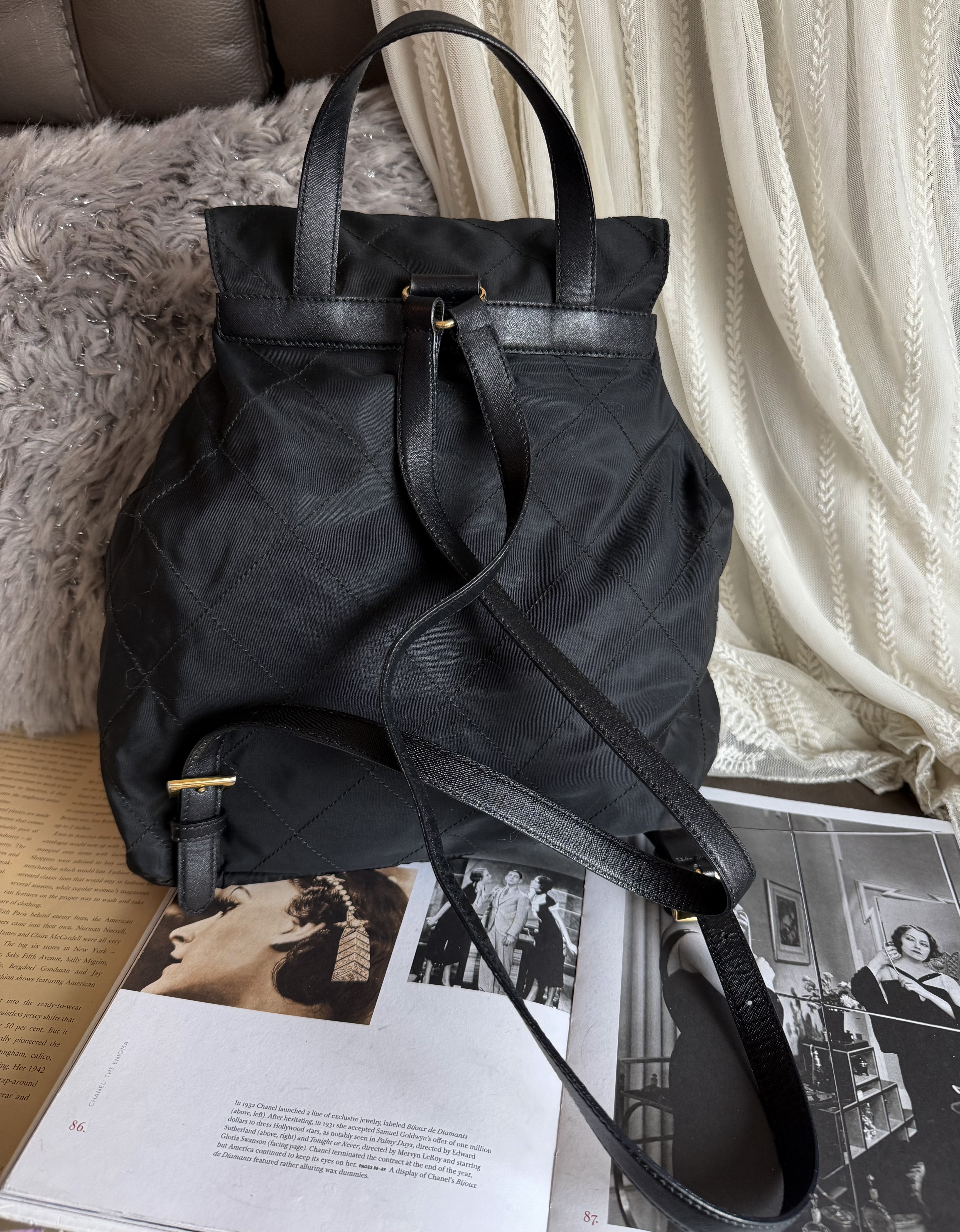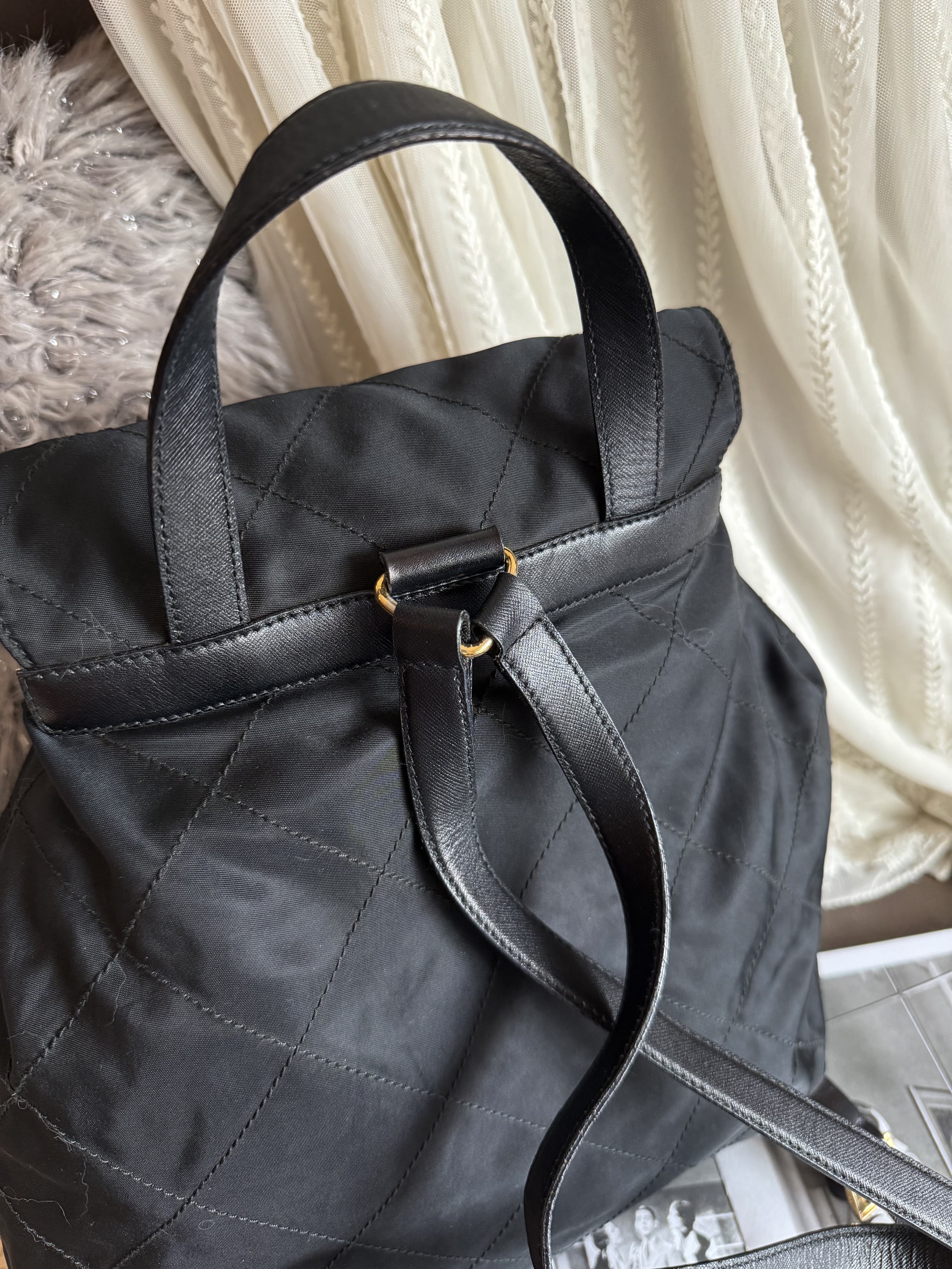 Vintage prada black nylon leather backpack