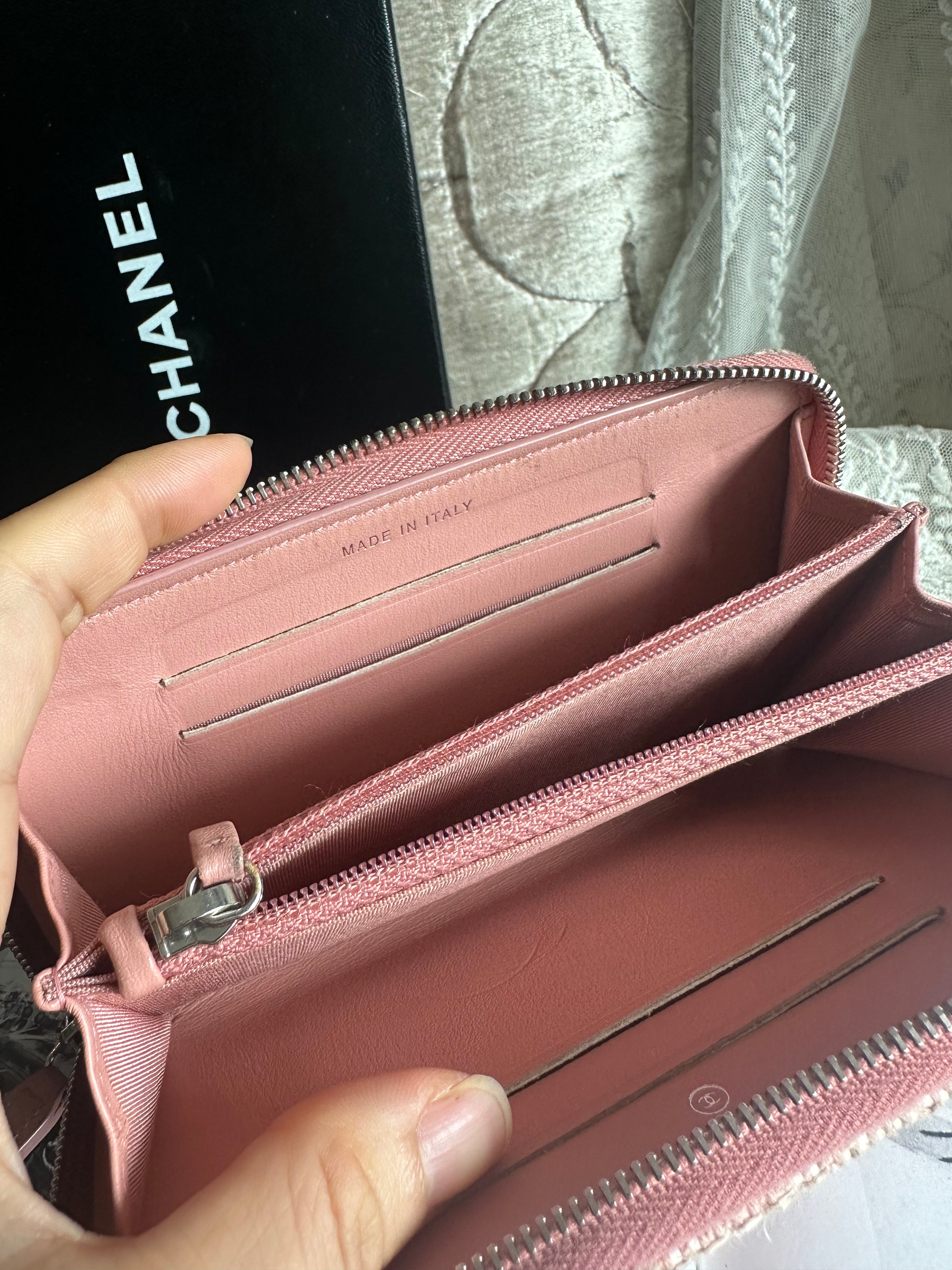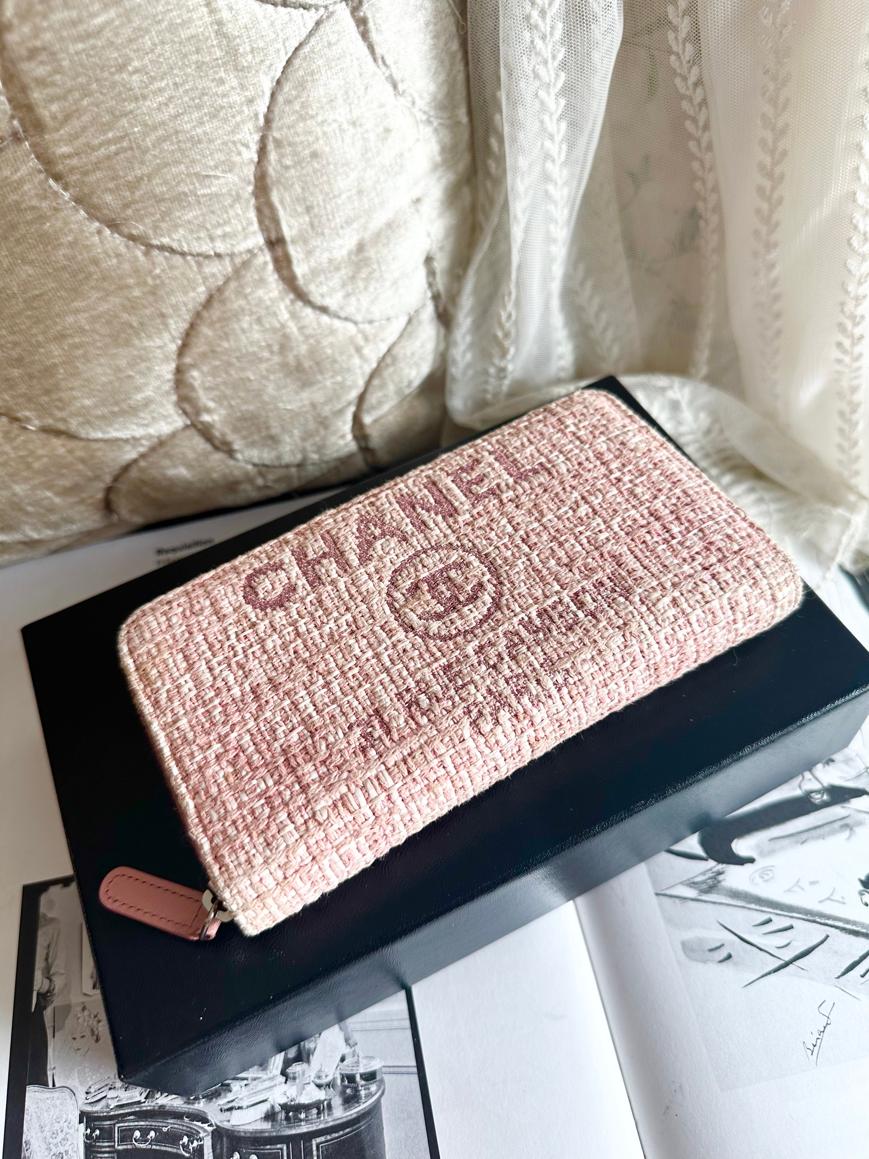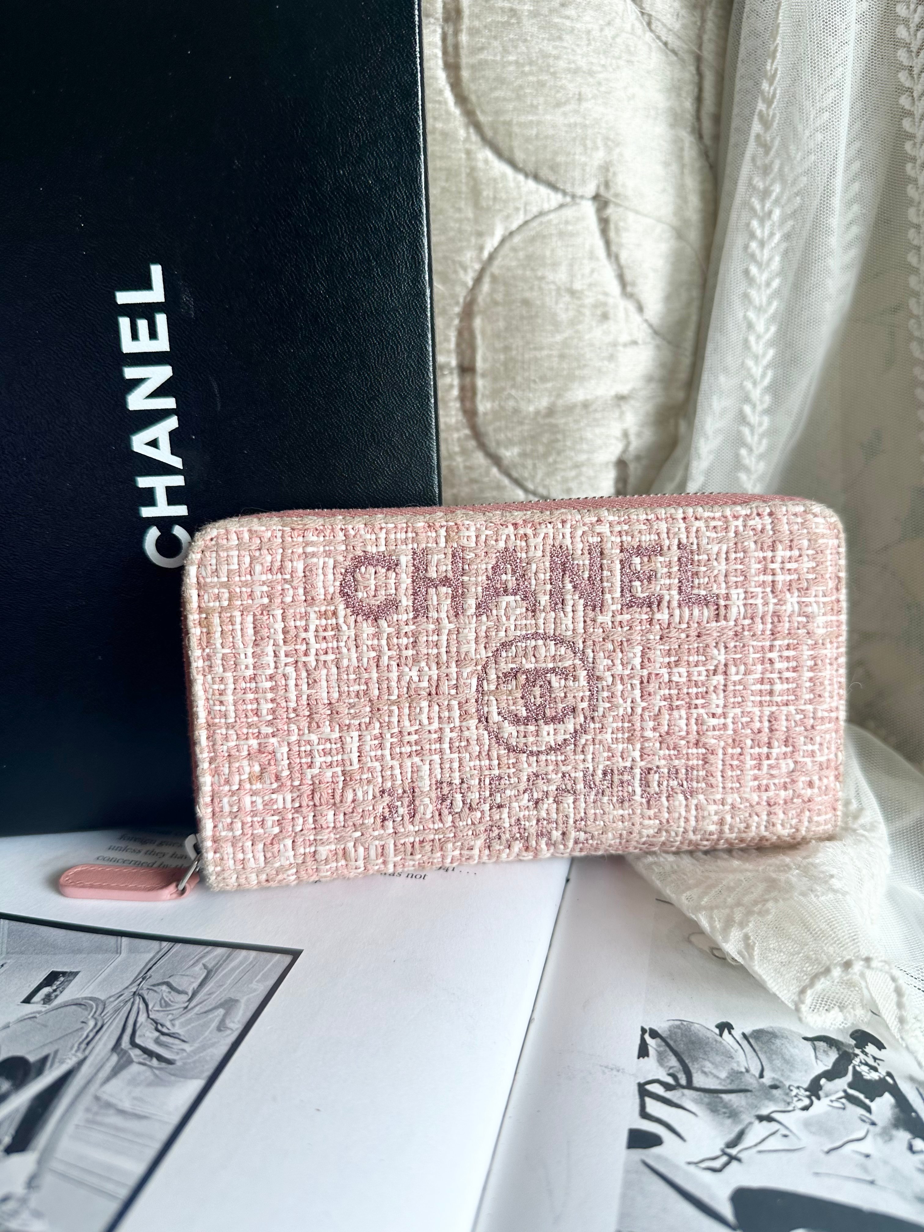 超靚chanel 粉紅♥️pink deauville zip wallet💛可當clutch用 勁靚超有少女心😻 狀態靚仔🖤🥰25字頭 有貼有盒貼數字清晰可見 chanel pink deauville zip wallet Dimensions:15x9x2m 年份:2018 配件:貼/ 盒 狀態:外觀90新/內90新 chanel pink deauville zip wallet Year 2018 Dimensions: 15x9x2m Accessories:authenticity sticker/box Condition : outside excellent condition /inside excellent 🖤本店為香港零售管理協會會員/門市已開業9年連續多年正版正貨商戶2025編號 001176 付款方法:VISA / MASTER / AE / 銀聯 / UNION PAY /現金 /alipay ❤️門市提供恒生💳渣打💳滙豐💳AE 💳DBS 💳Citibank💳mox 信用卡✅免息分期✅ 📢本店只出售正版貨📢 ❤️歡迎親臨銅鑼灣門市😍 ❤️ 本門市已搬到銅鑼灣記利佐治街2-10號銅鑼灣地帶2樓237號鋪 Shop 237, 2/f, causeway place, 2 great george street, causeway bay