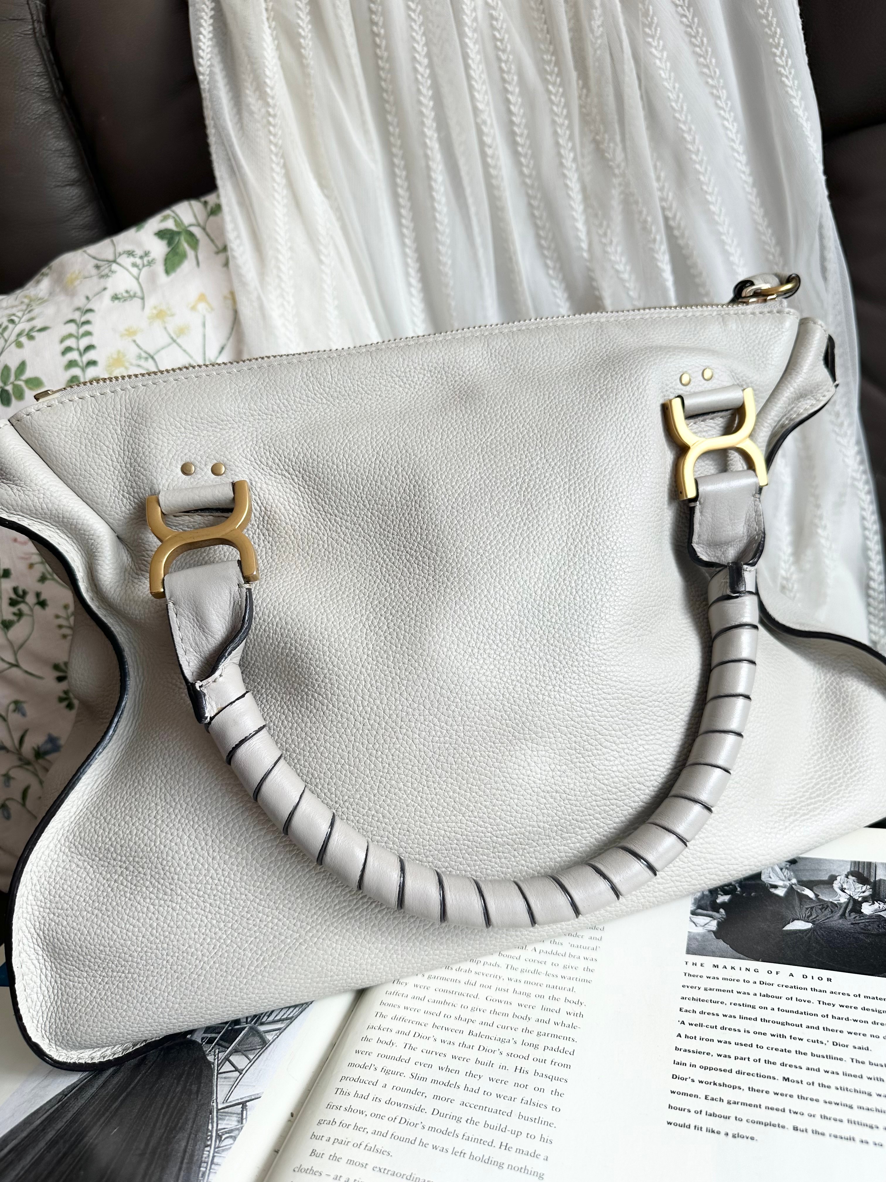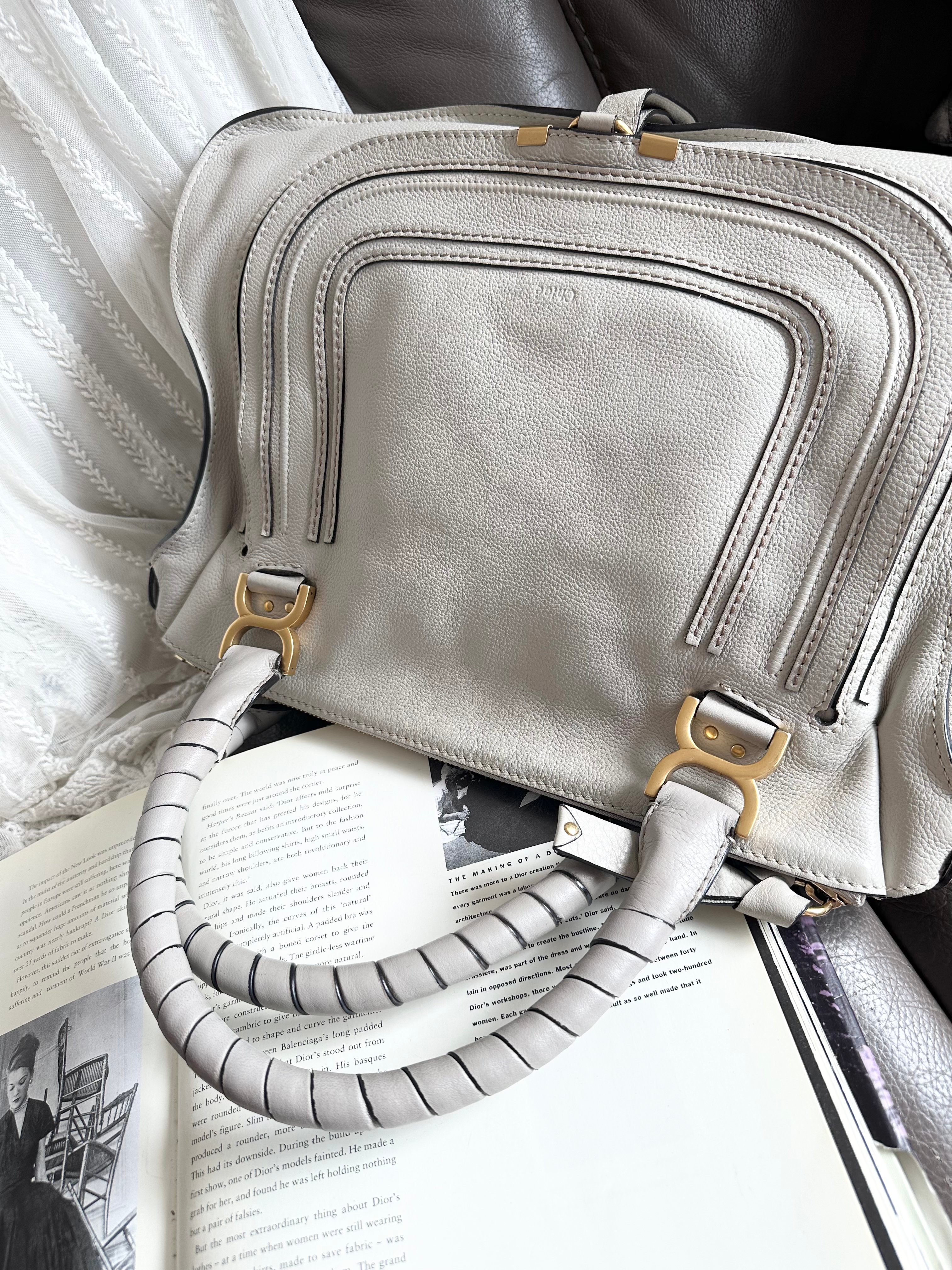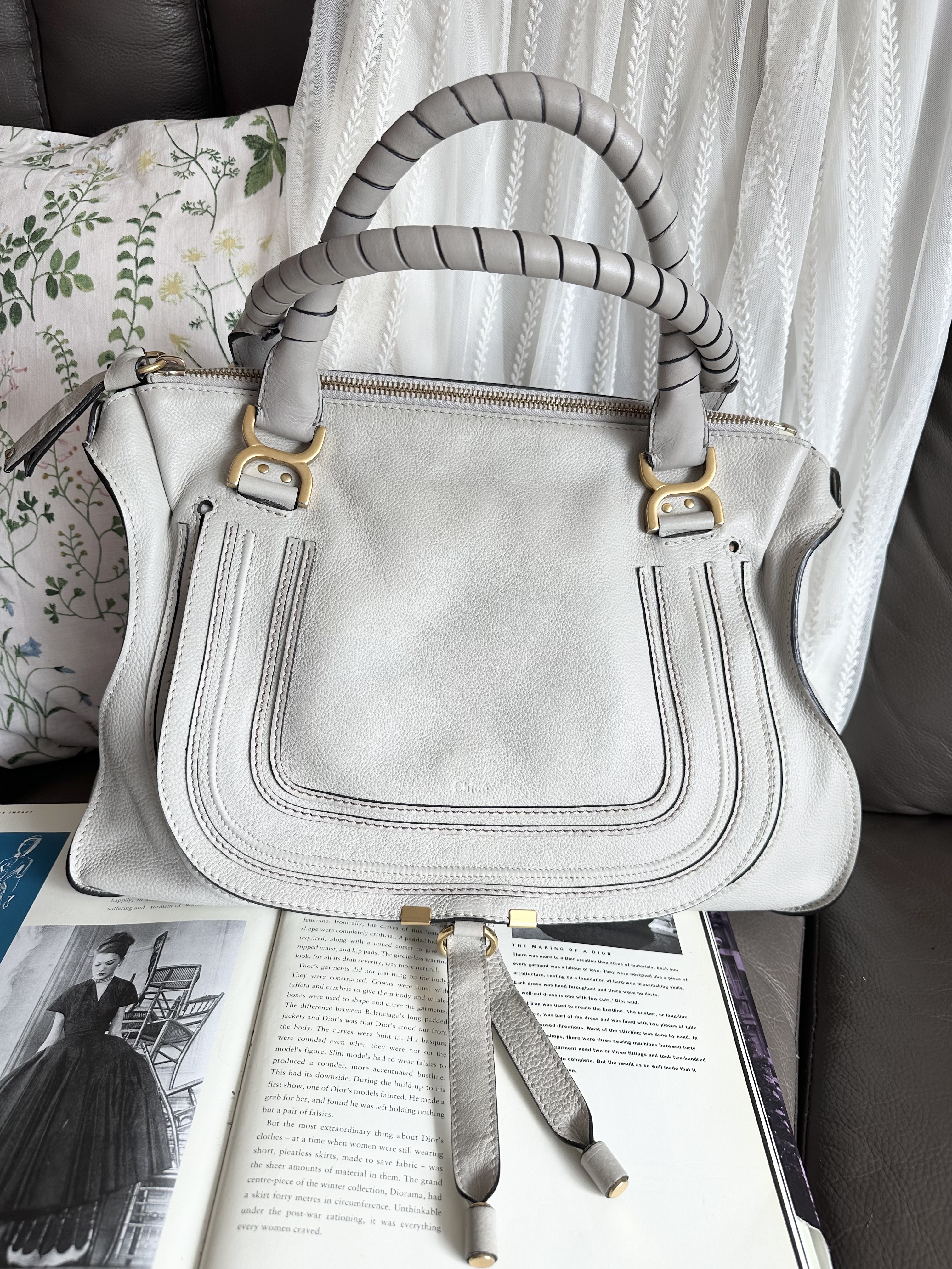 Chloe marcie bag grey ♥️原裝冇長帶版本 如果要放好多嘢嘅呢個就啱 放到macbook /做gym用perfect 外觀勁新淨袋內有兩處小破損 chloe marcie bag grey color 尺寸: 39x25x11cm 配件:沒有 狀態外觀:97新/內85新 chloe marcie bag grey color Dimensions :39x25x11cm Accessories :none Condition :outside like new/inside good with some damage (see photo) ❤️本店為香港零售管理協會會員/門市已開業9年連續多年正版正貨商戶2025編號 001176 付款方法:VISA / MASTER / AE / 銀聯 / UNION PAY /現金 /alipay ❤️另提供 AE 信用卡12個月免息分期 /恆生信用卡12個月免息分期/hsbc 12個月免息分期/渣打12個月免息分期 📢本店只出售正版貨📢 ❤️歡迎親臨銅鑼灣門市😍 ❤️ 本門市已搬到銅鑼灣記利佐治街2-10號銅鑼灣地帶2樓237號鋪 Shop 237, 2/f, causeway place, 2 great george street, causeway bay WhatsApp :📞65230308