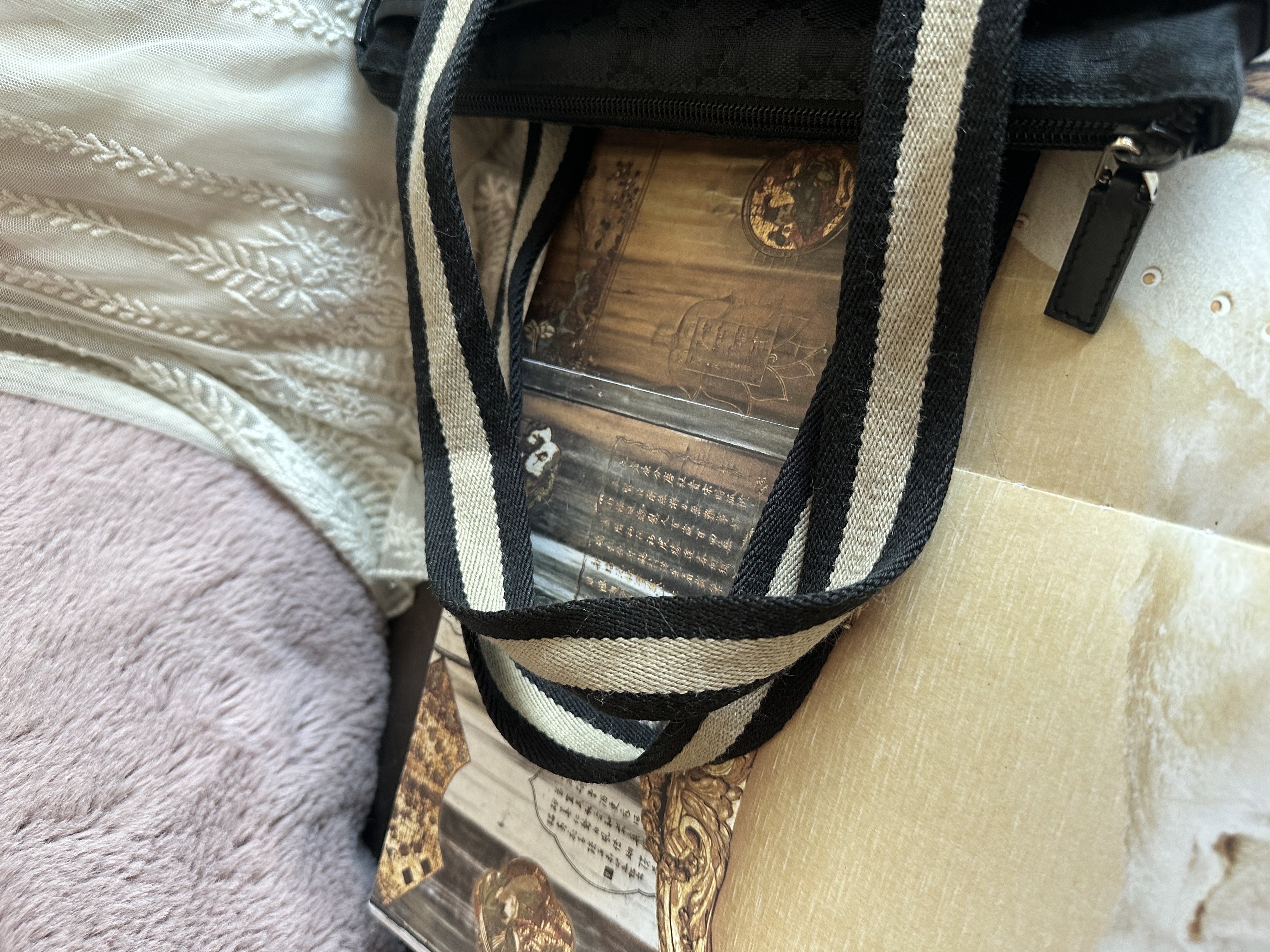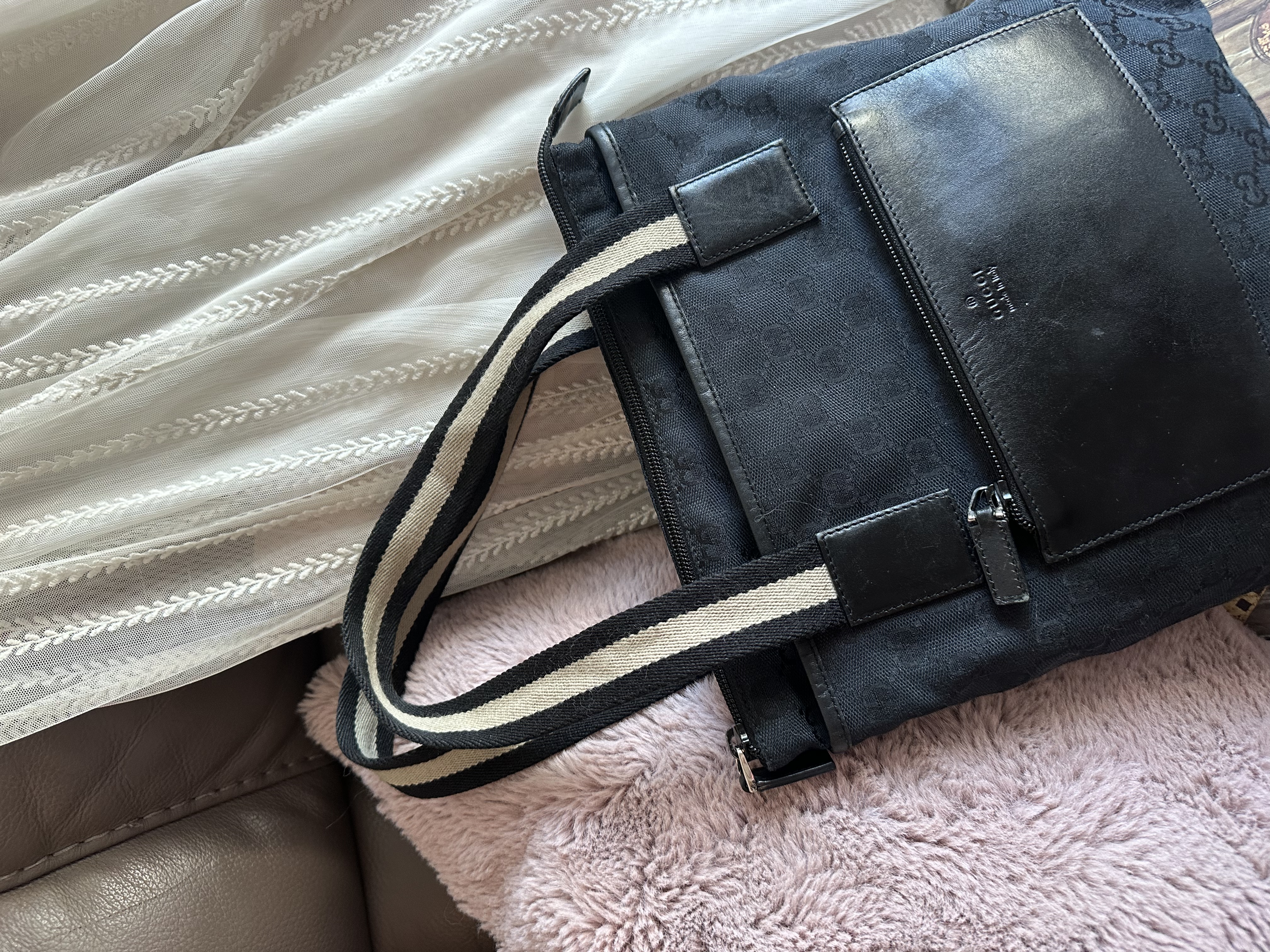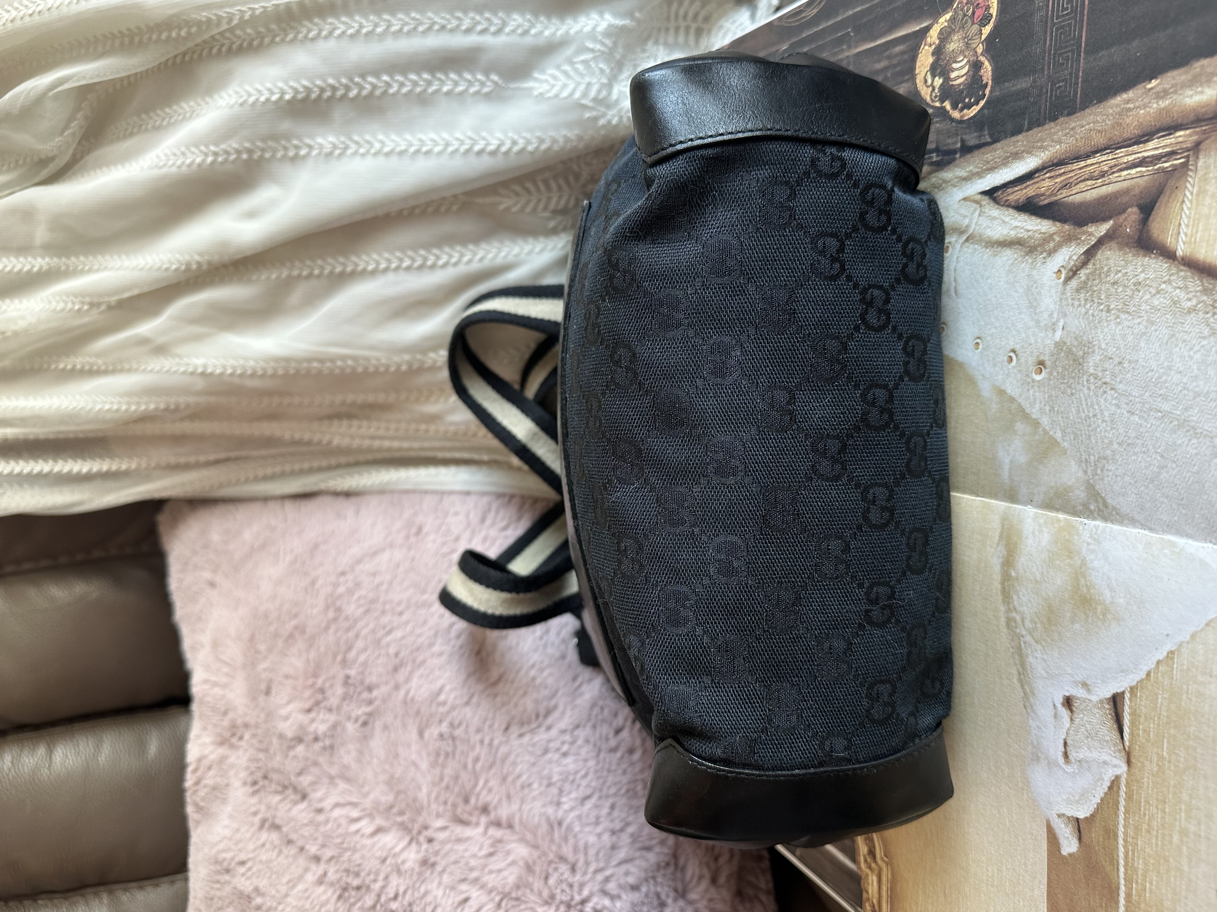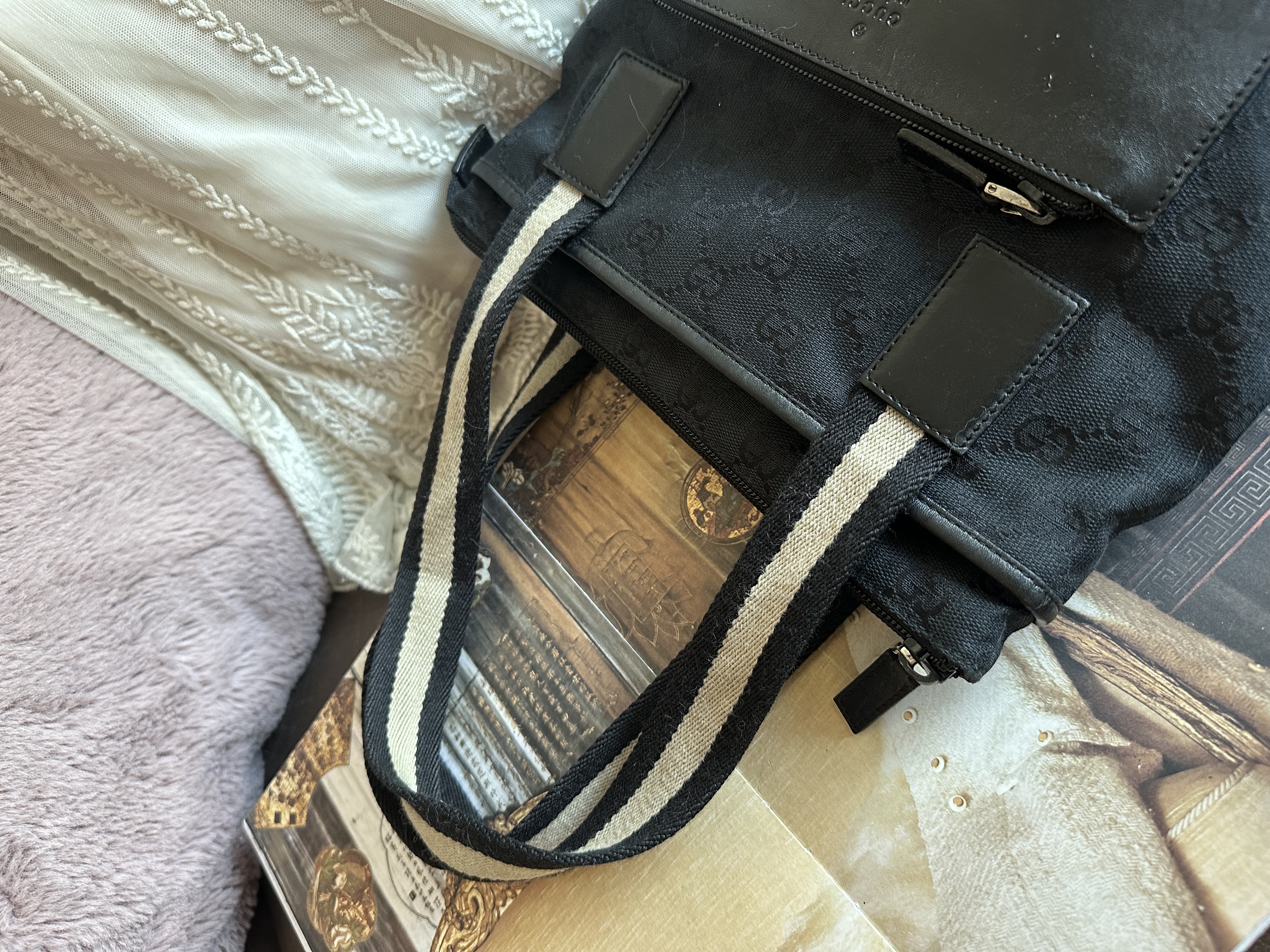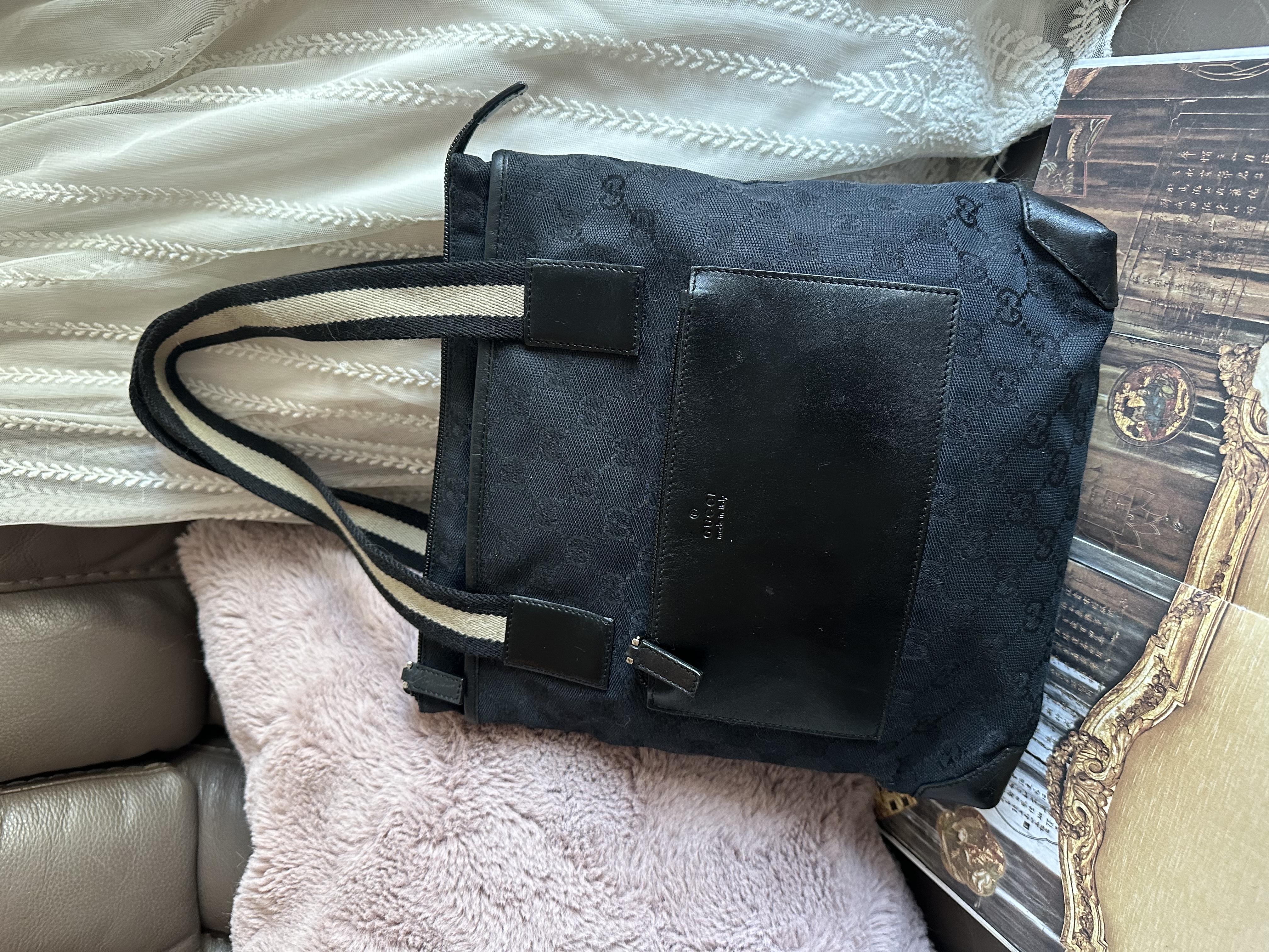 gucci gg canvas and leather black shoulder bag