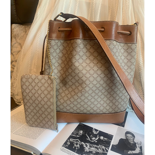 vintage celine triomphe macadam triomphe bucket bag with pouch