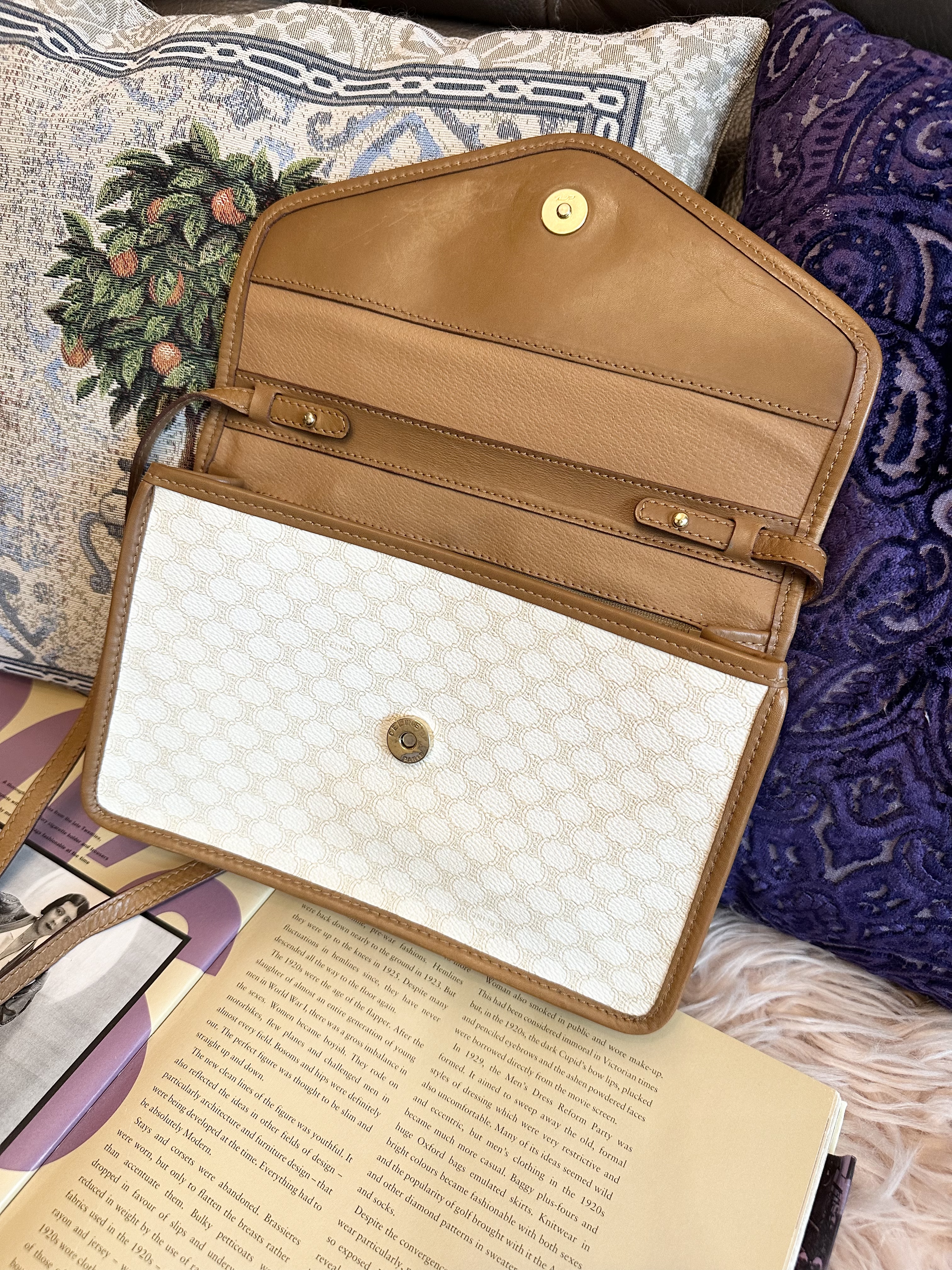 vintage celine white macadam triomphe crossbody bag