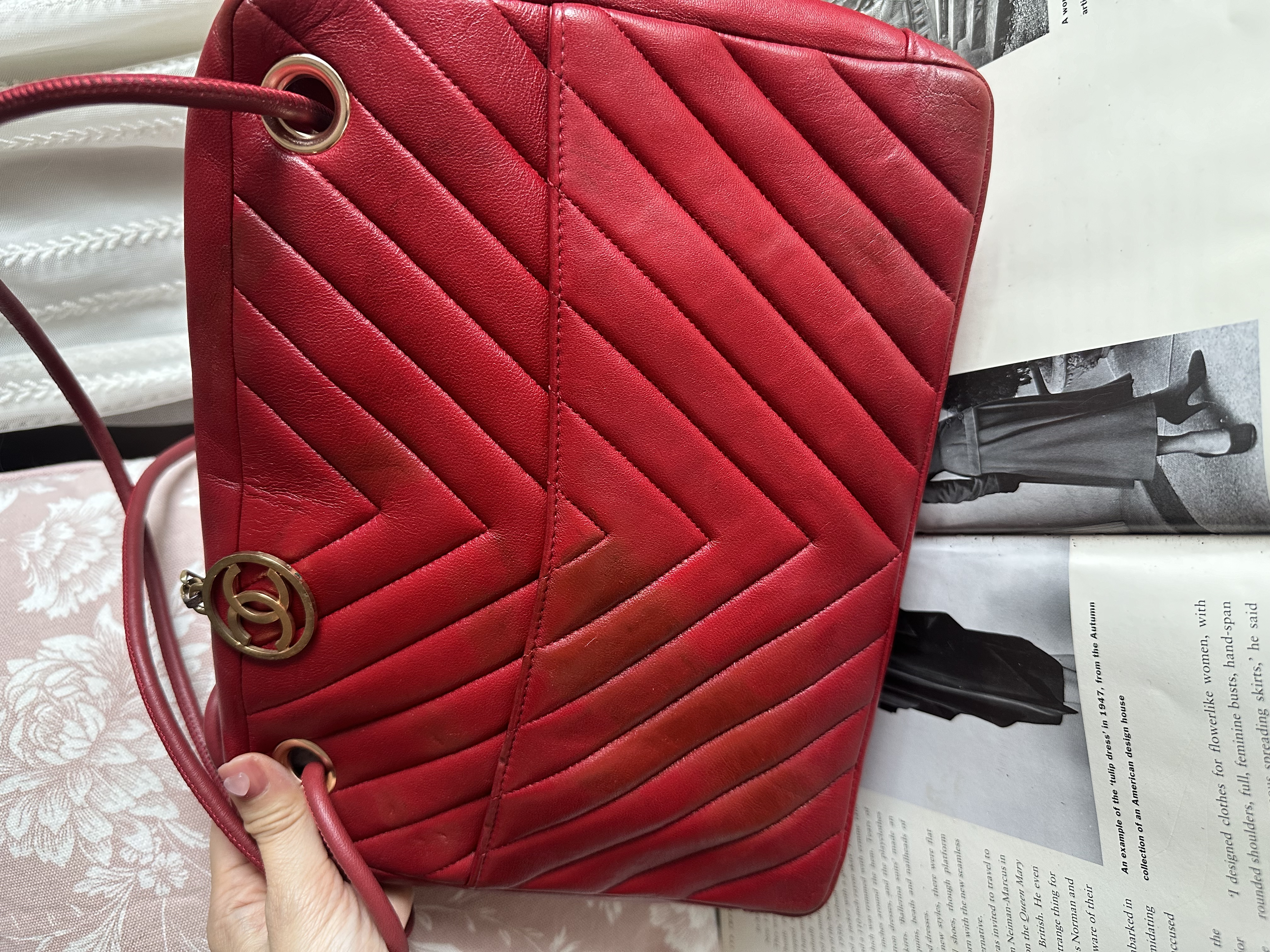 成日都有客問我哋有冇幾千蚊倒嘅Chanel 😂 今次呢隻機會嚟啦 vintage chanel 1991年V-Stitch chevron shoulder bag red lambskin leather shoulder bag /crossbody bag 有卡有貼貼數字清晰可見 亦都有日本出世金貼 1991年出世自伊勢丹新宿店 畢竟呢個袋都34歲唔好咁高要求 有要求的話可以揀我哋舖頭其他款式 🤣曾翻新做護理☑️粗用一流 狀態還可社交距離用都👌 💰4999 帶走 vintage chanel 1991年V-Stitch chevron shoulder bag red lambskin leather shoulder bag /crossbody bag 尺寸 :27x20x8 配件: 卡/貼 (貼數字清晰可見 ) 日本出世金貼 1991年出世自🇯🇵伊勢丹新宿店 狀態:外觀80新(曾翻新/有歲月痕跡/凹痕/刮痕/ 內80新 有麈/金粉/ 磨損 1991 vintage chanel V-Stitch chevron shoulder bag red lambskin leather shoulder bag /crossbody bag Dimensions:27x20x8cm Accessories : authenticity sticker(able to read the number )card /japan gold sticker Condition:good with some sign of use /repainted) inside good with some sign of use/dust 🖤本店為香港零售管理協會會員/門市已開業9年連續多年正版正貨商戶2025編號 001176 付款方法:VISA / MASTER / AE / 銀聯 / UNION PAY /現金 /alipay ❤️門市提供恒生💳渣打💳滙豐💳AE 💳DBS 💳Citibank💳mox 信用卡✅免息分期✅ 📢本店只出售正版貨📢 ❤️歡迎親臨銅鑼灣門市😍 ❤️ 本門市已搬到銅鑼灣記利佐治街2-10號銅鑼灣地帶2樓237號鋪 Shop 237, 2/f, causeway place, 2 great george street, causeway bay 📞65230308
