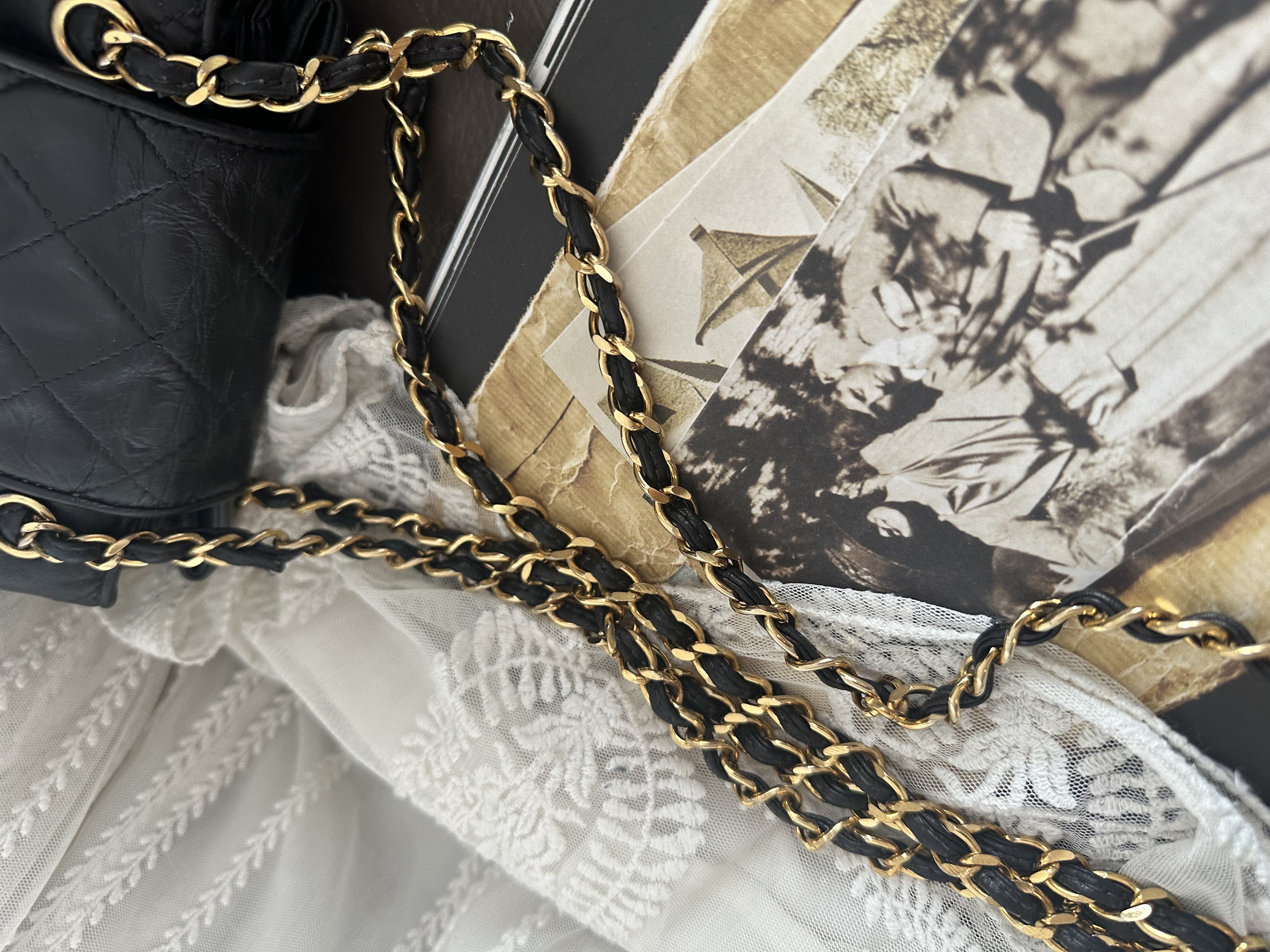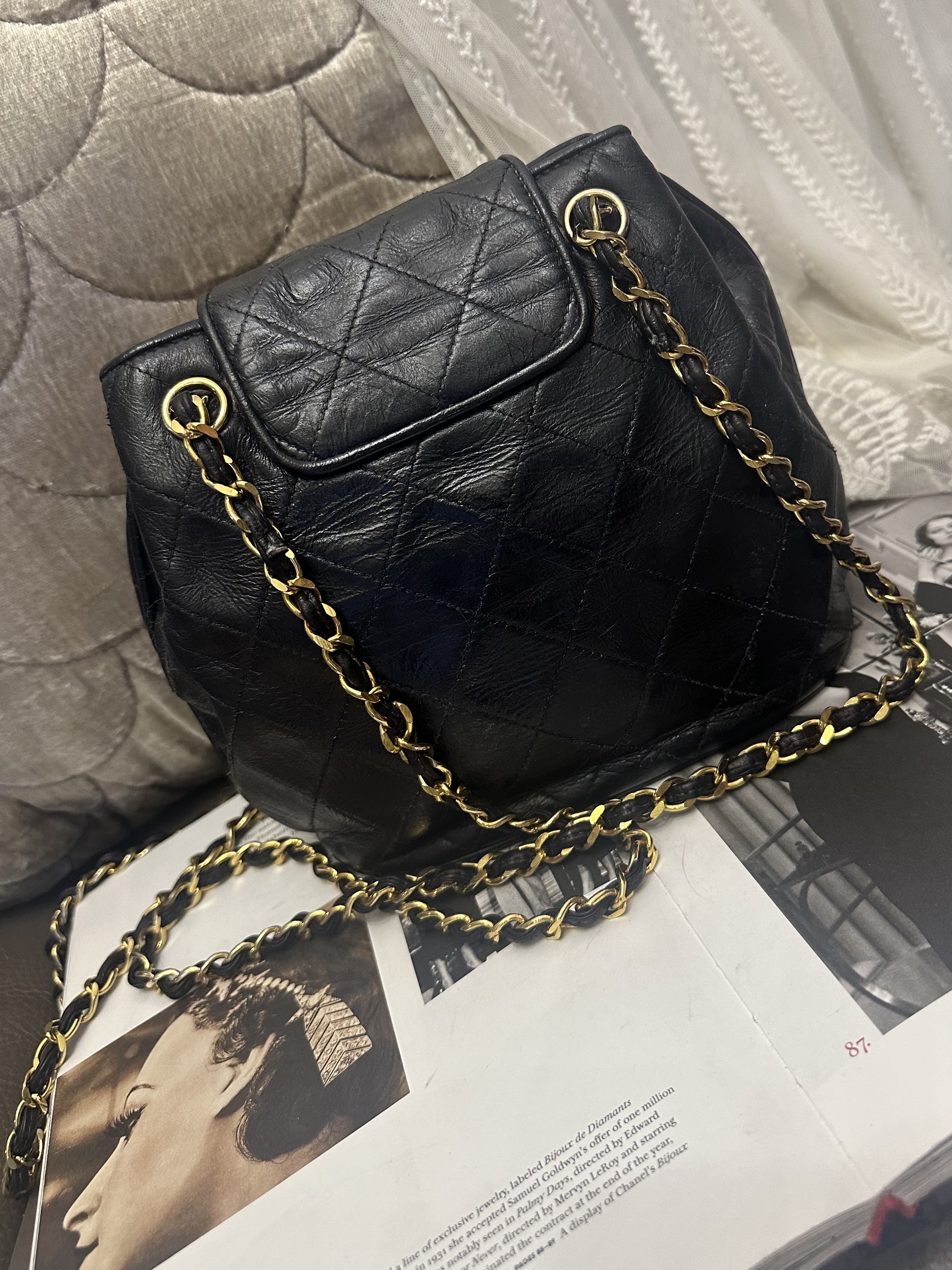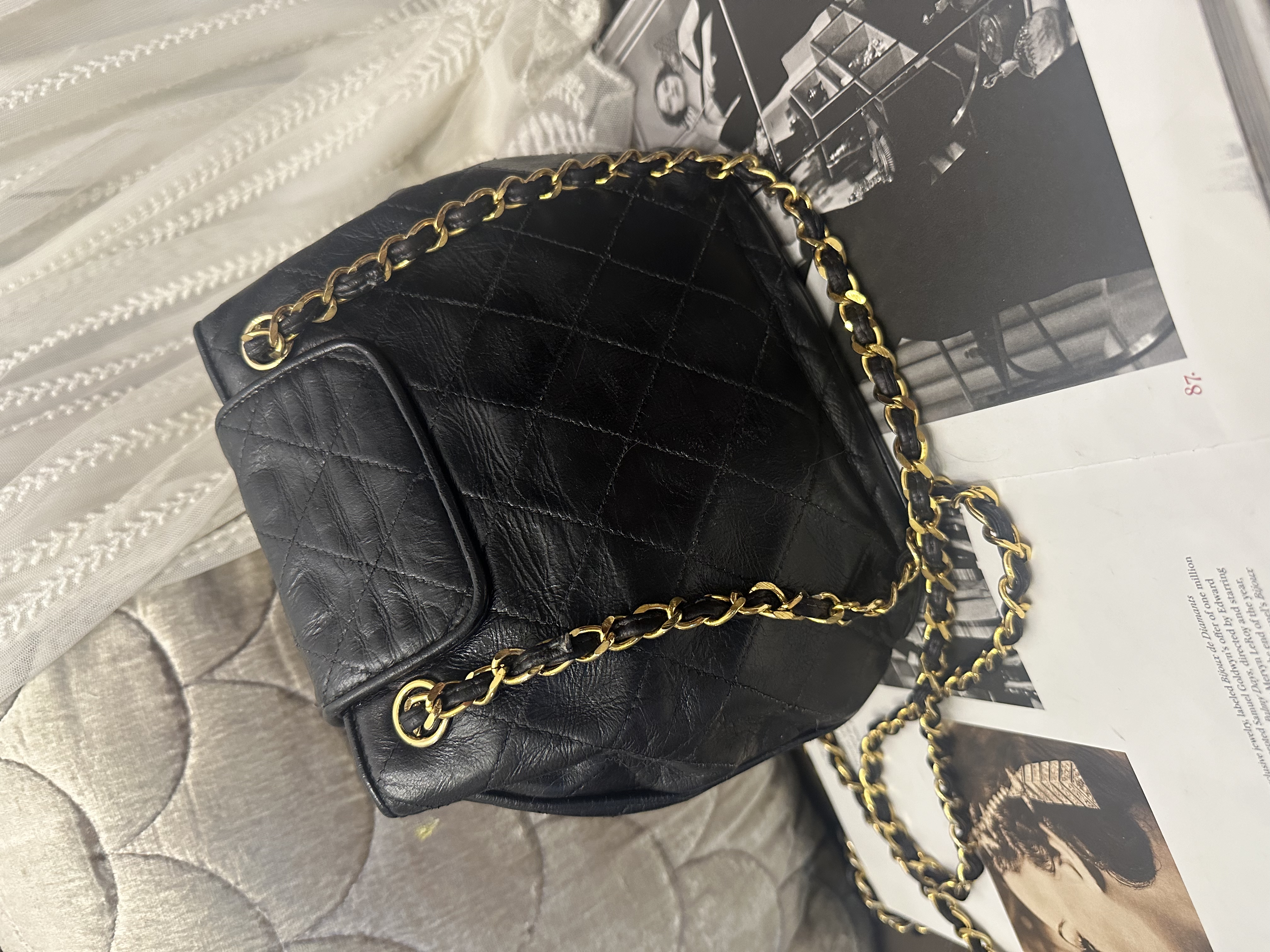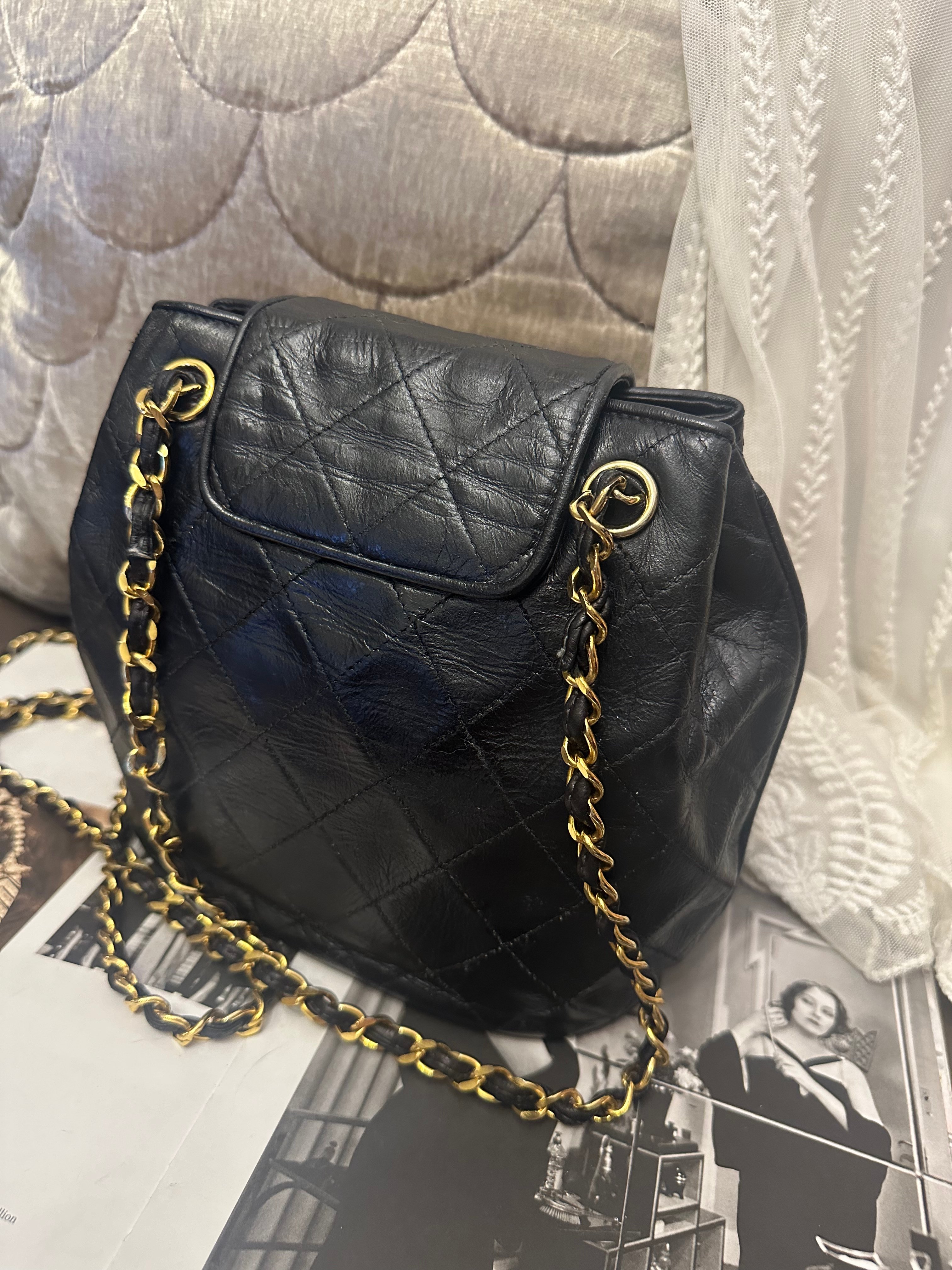vintage chanel black leather tassel bucket chain bag