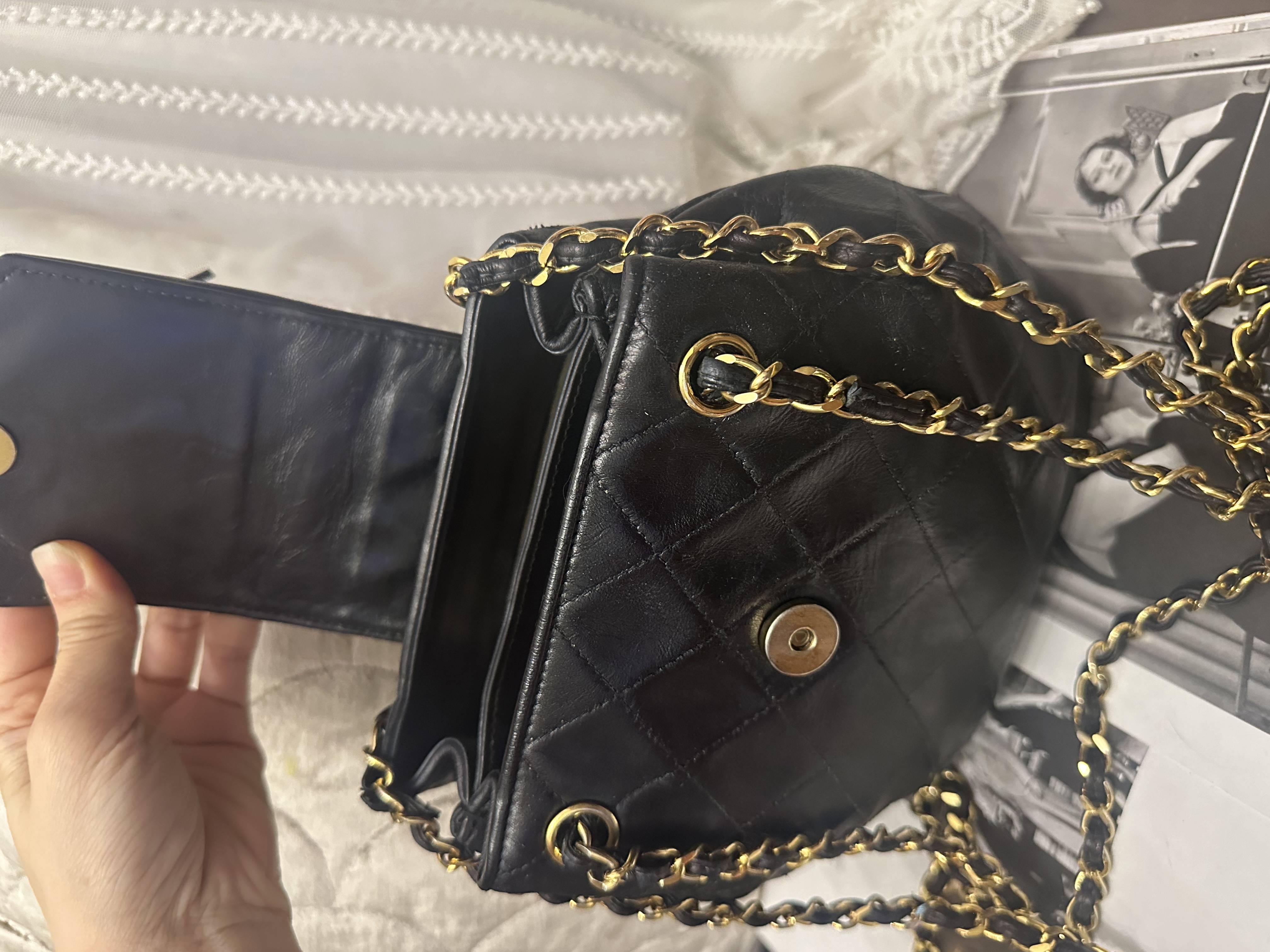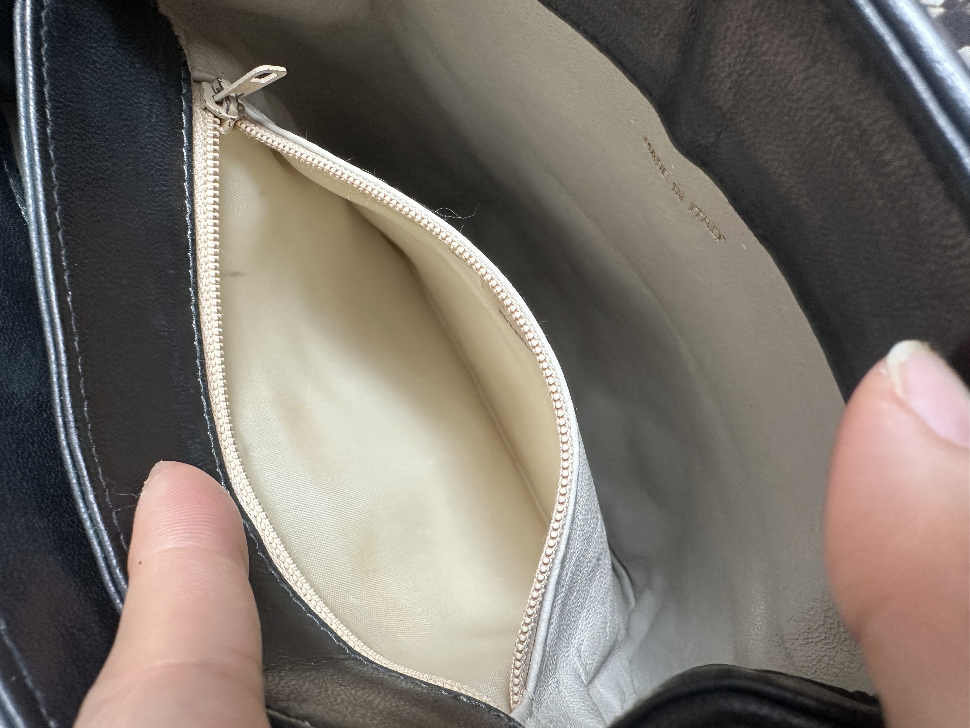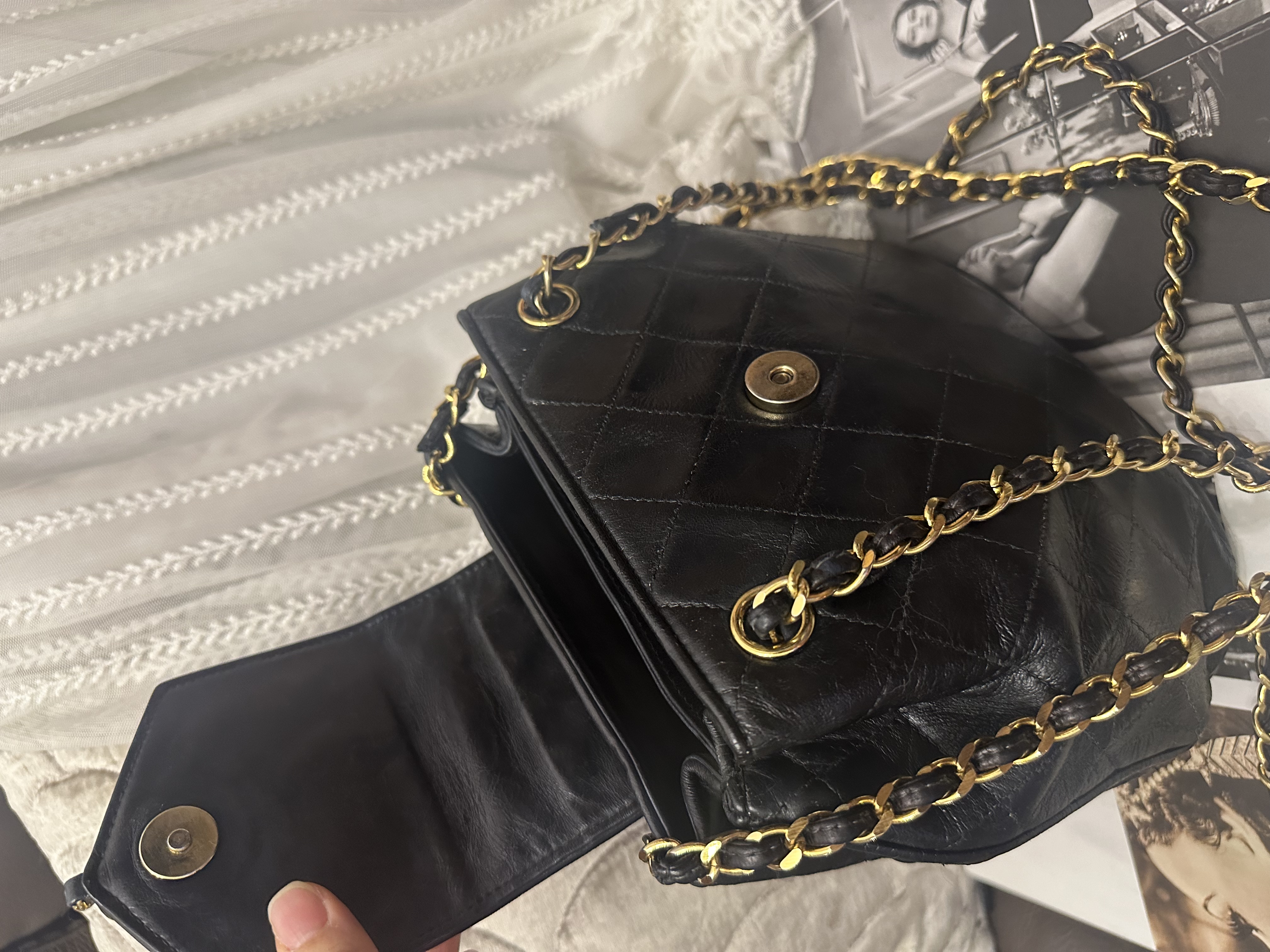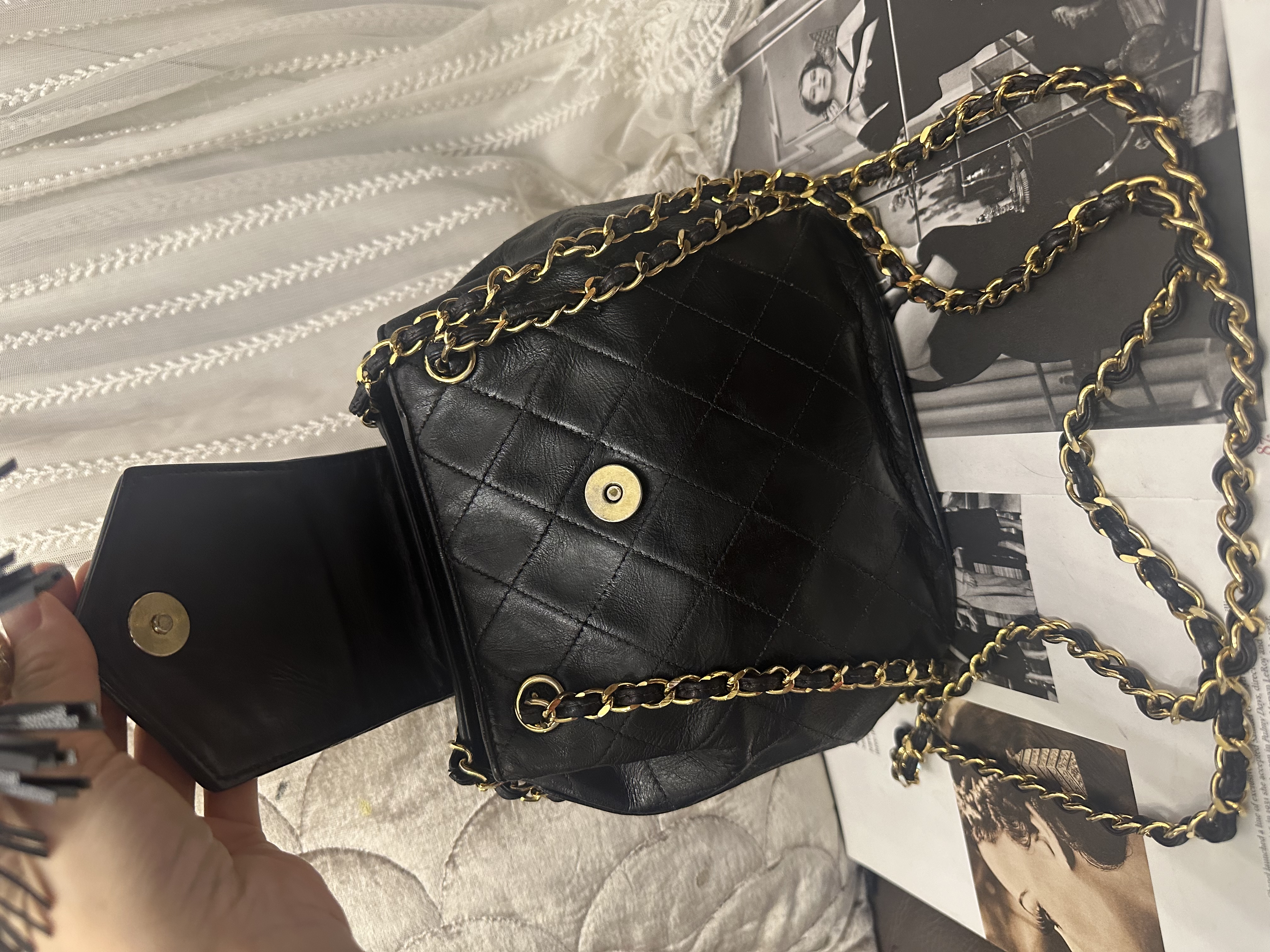 1989-91 vintage chanel cc tassel chain bucket black bag靚就係尺寸唔太大 入面有兩個間隔 夠長可以斜咩 30幾年歷史❤️低調得黎好靚嘅一款 1字頭有貼 貼數字清晰可見 日本金貼 91年出世自京都高島屋 曾做護理轉色 vintage chanel black leather tassel bucket chain bag 尺寸:18x19x10cm 配件:貼(數字清晰可見) 日本金貼 91年出世自京都高島屋 狀態:外觀90新/內93新 vintage chanel black leather tassel bucket chain bag Dimensions :18x19x10cm Accessories :authenticity sticker (numbers are clear ) /gold sticker from the Takashimaya Chanel boutique in Kyoto, year 1991 Condition:excellent (color transfered from white to black ) / inside excellent 🖤本店為香港零售管理協會會員/門市已開業9年連續多年正版正貨商戶2025編號 001176 付款方法:VISA / MASTER / AE / 銀聯 / UNION PAY /現金 /alipay ❤️門市提供恒生💳渣打💳滙豐💳AE 💳DBS 💳Citibank💳mox 💳信用卡✅免息分期✅ 📢本店只出售正版貨📢 ❤️歡迎親臨銅鑼灣門市😍 ❤️ 本門市已搬到銅鑼灣記利佐治街2-10號銅鑼灣地帶2樓237號鋪 Shop 237, 2/f, causeway place, 2 great george street, causeway bay 📞WhatsApp 65230308