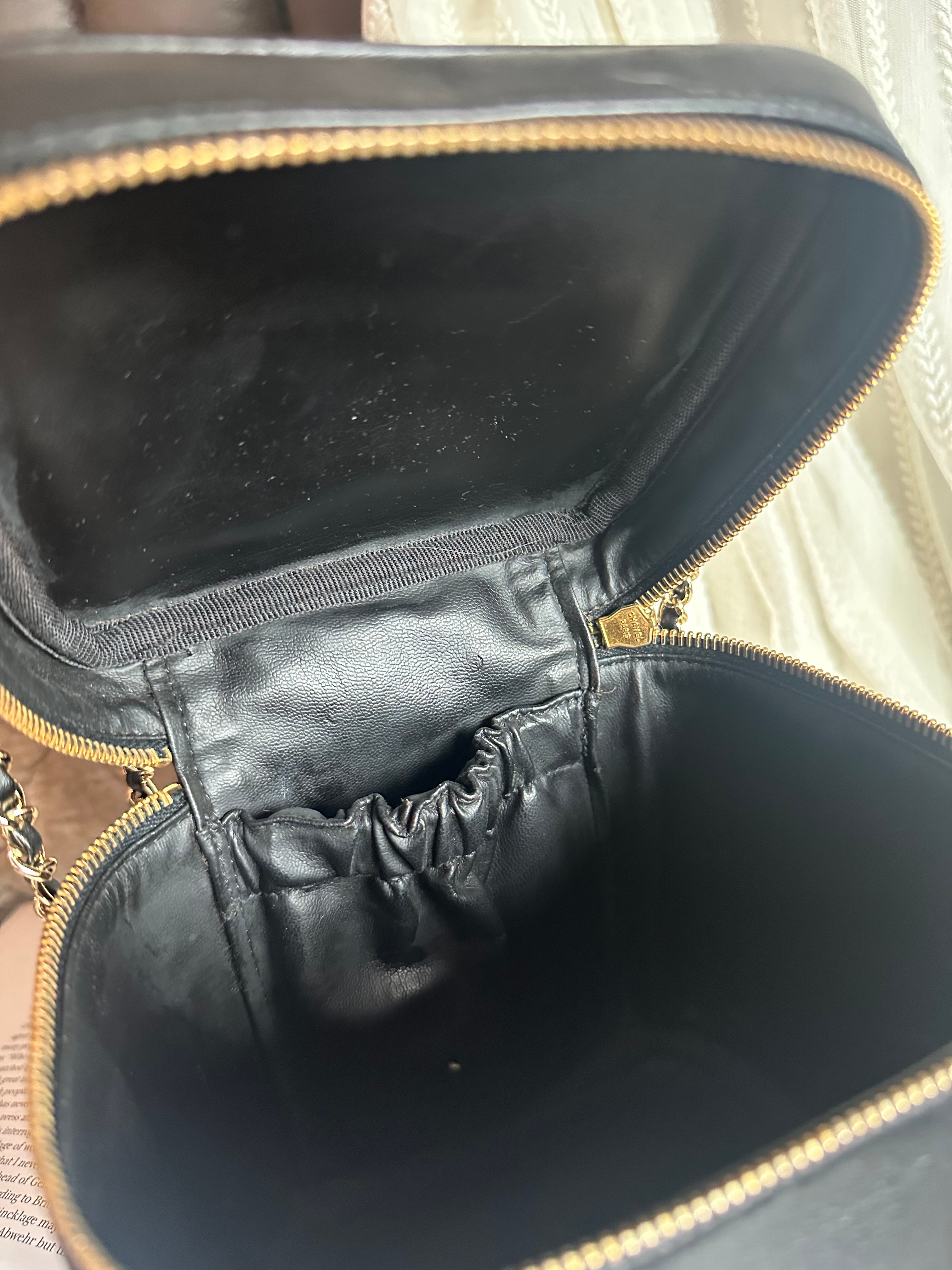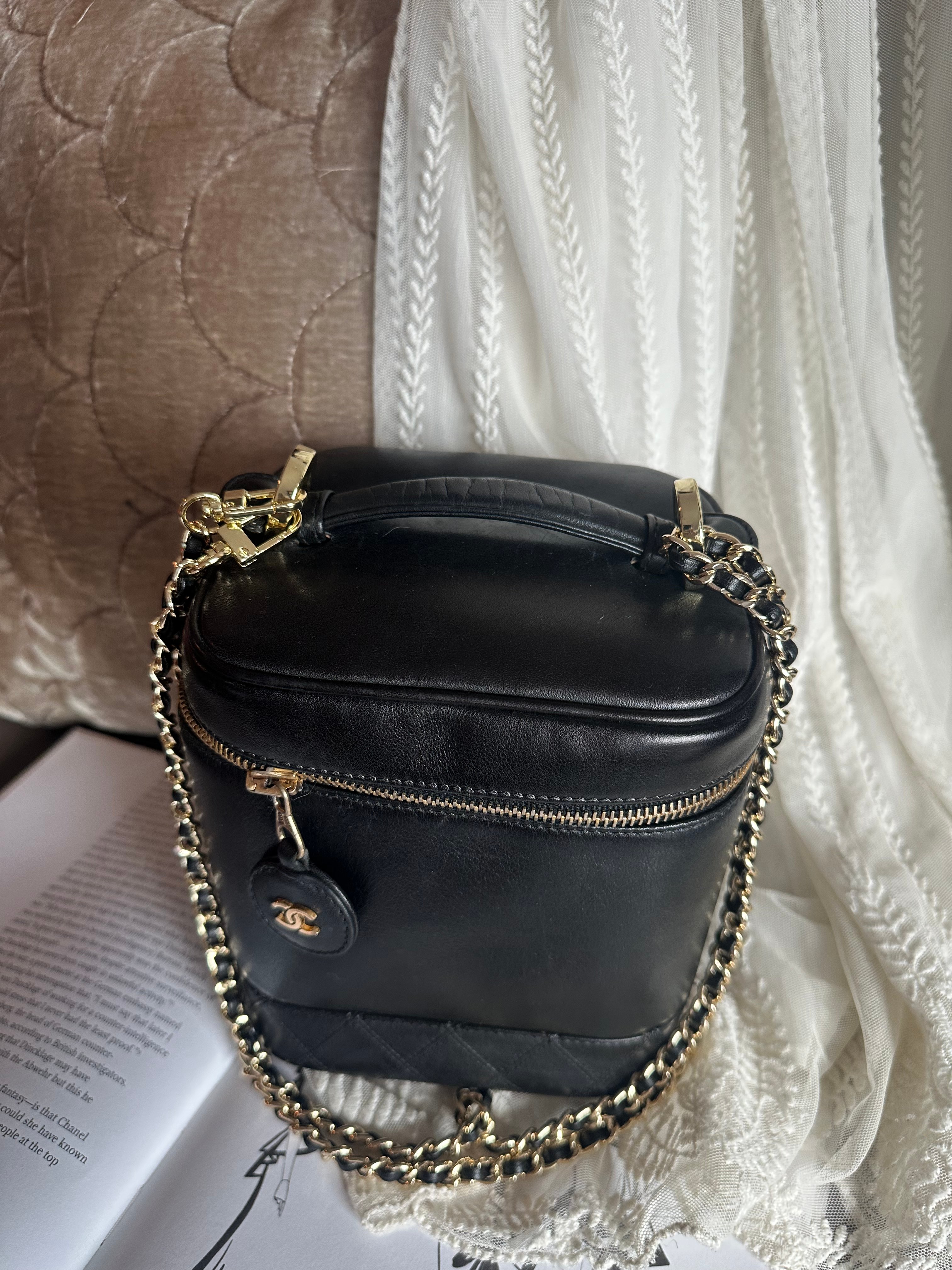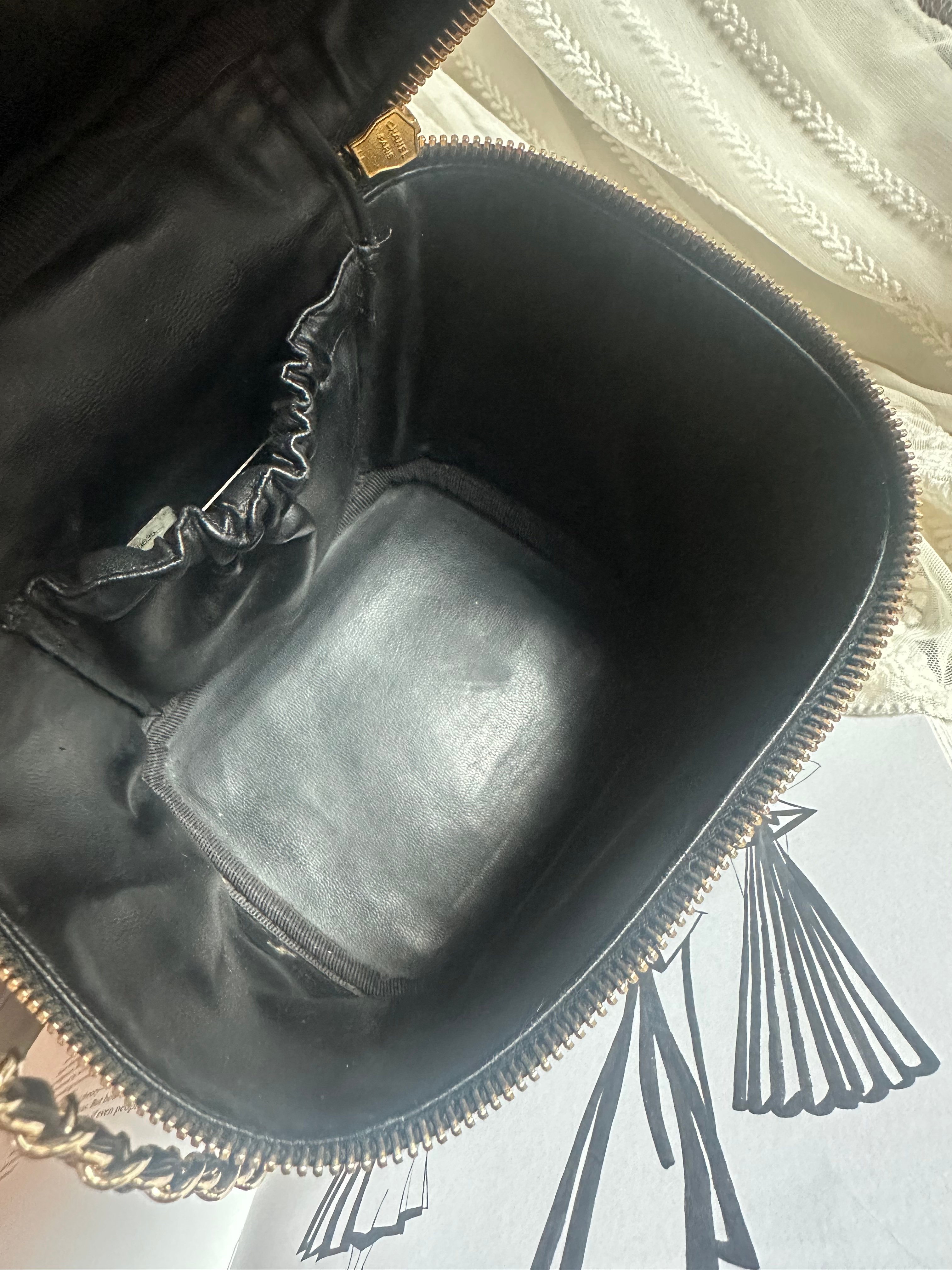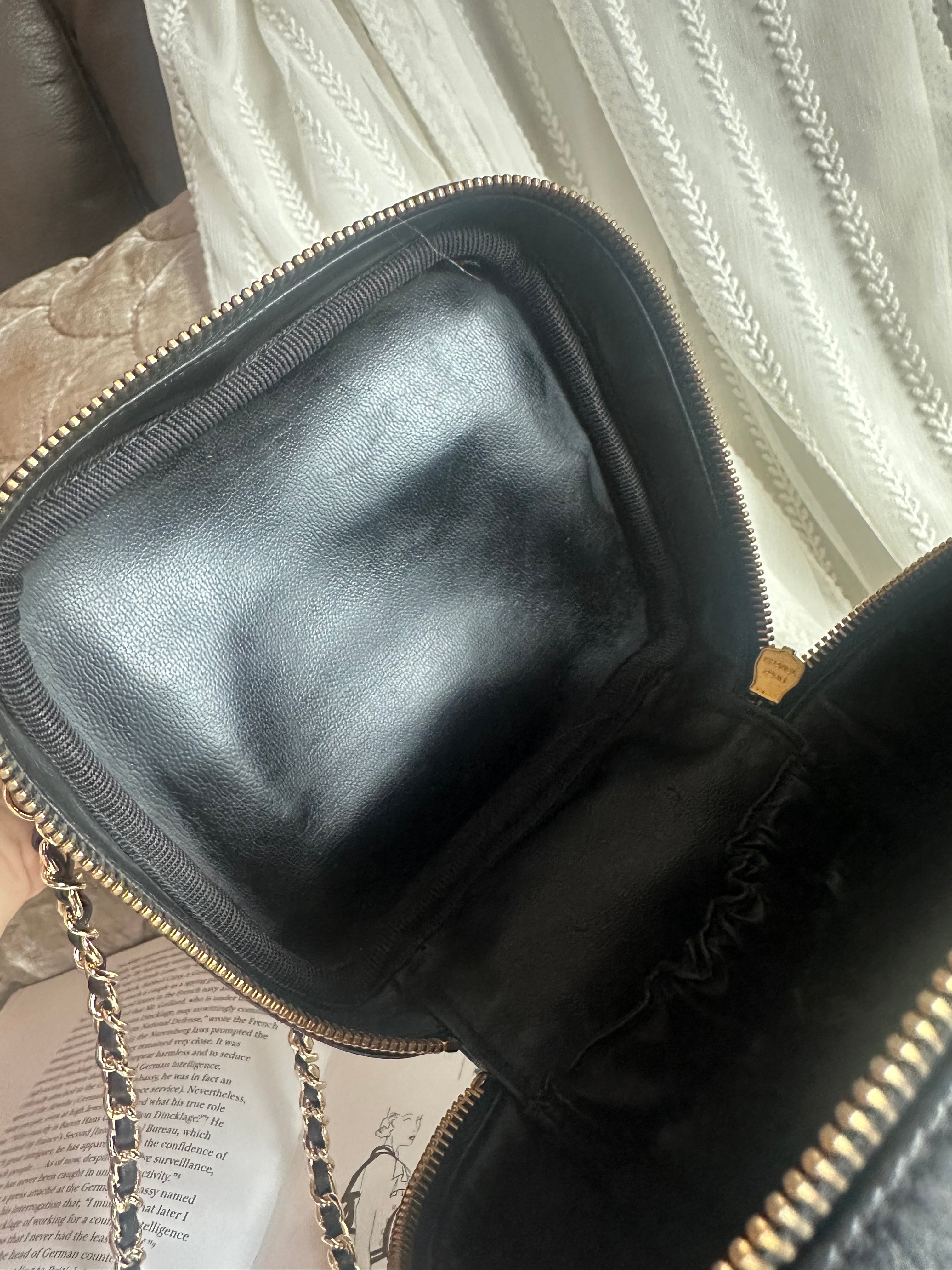 🇯🇵✈️尋日到港🔥再揾多只翻親都秒售vintage cc vanity 勁新淨 有貼有卡貼數字清晰可見 改裝的❤️後加左沒品牌鏈同扣即刻可以斜咩或者當腋下包用 容量多放到長銀包同電話 💙 💰5580 vintage chanel black vanity bag 尺寸:17x15x13cm 年份:96-97 配件:貼/卡 狀態:外觀95新/内93新 送可改裝成袋用扣一對/送冇品牌長鏈一條 以上是免費贈送原裝並沒有/ Item has been modified, installed non branded hook and non branded chain (全部可隨意拆除) vintage chanel black vanity case Dimemsions: 17x15x13cm Accessories :serial /card Condition:very good Item has been modified, installed non branded hook and non branded chain 🖤本店為香港零售管理協會會員/門市已開業9年連續多年正版正貨商戶2025編號 001176 付款方法:VISA / MASTER / AE / 銀聯 / UNION PAY /現金 /alipay ❤️門市提供恒生💳渣打💳滙豐💳AE 💳DBS 💳Citibank💳mox 信用卡✅免息分期✅ 📢本店只出售正版貨📢 ❤️歡迎親臨銅鑼灣門市😍 ❤️ 本門市已搬到銅鑼灣記利佐治街2-10號銅鑼灣地帶2樓237號鋪 Shop 237, 2/f, causeway place, 2 great george street, causeway bay