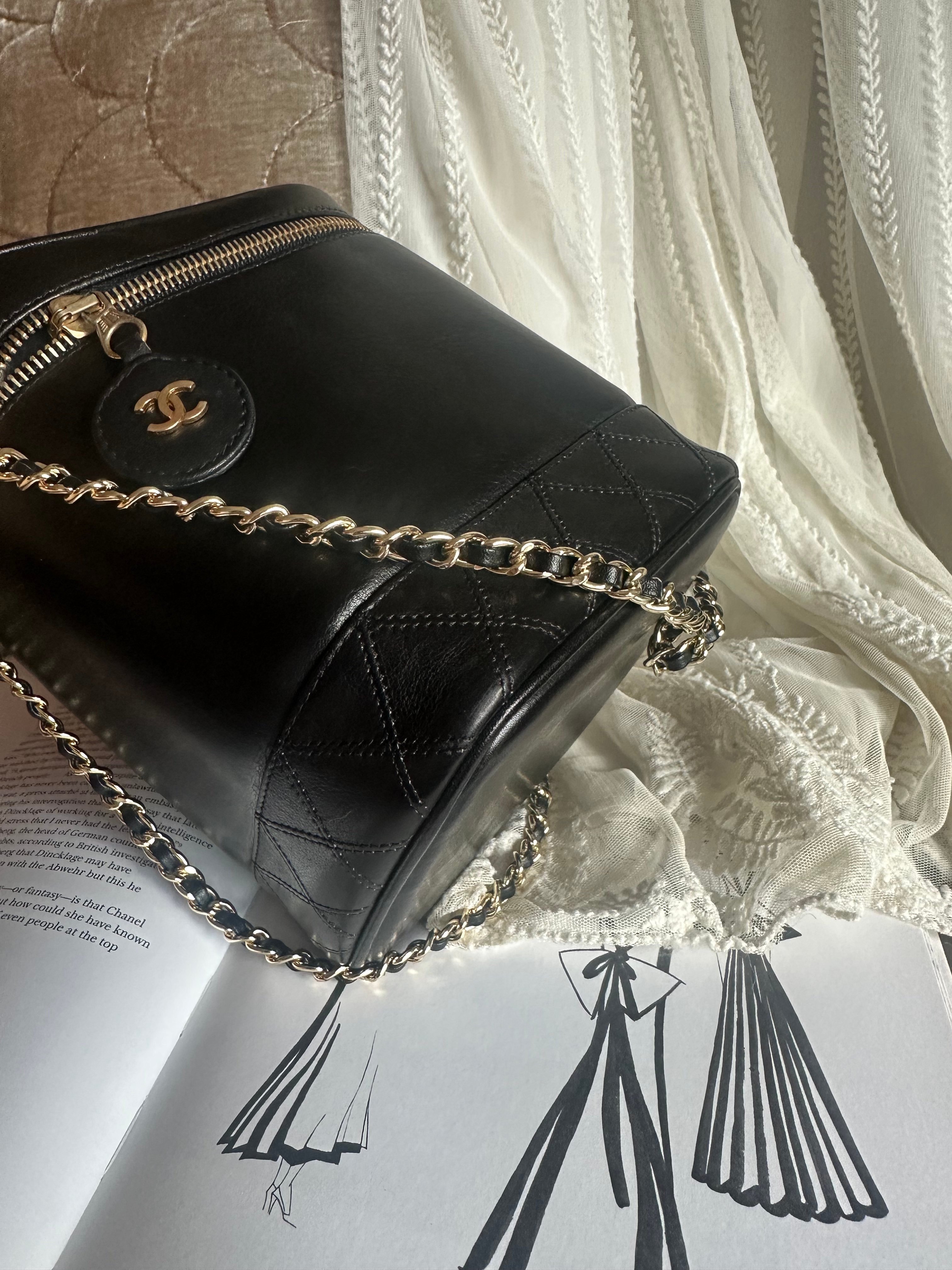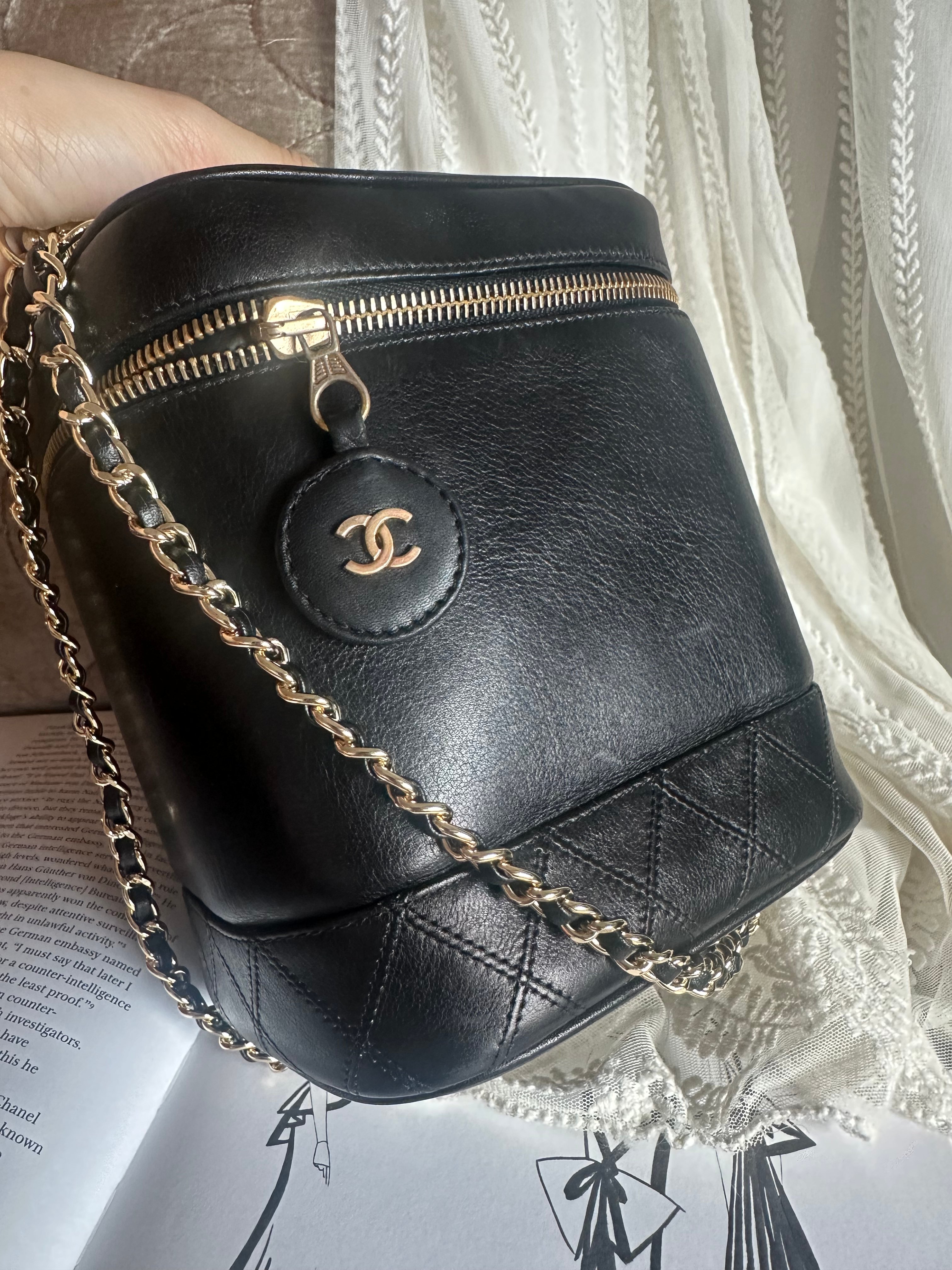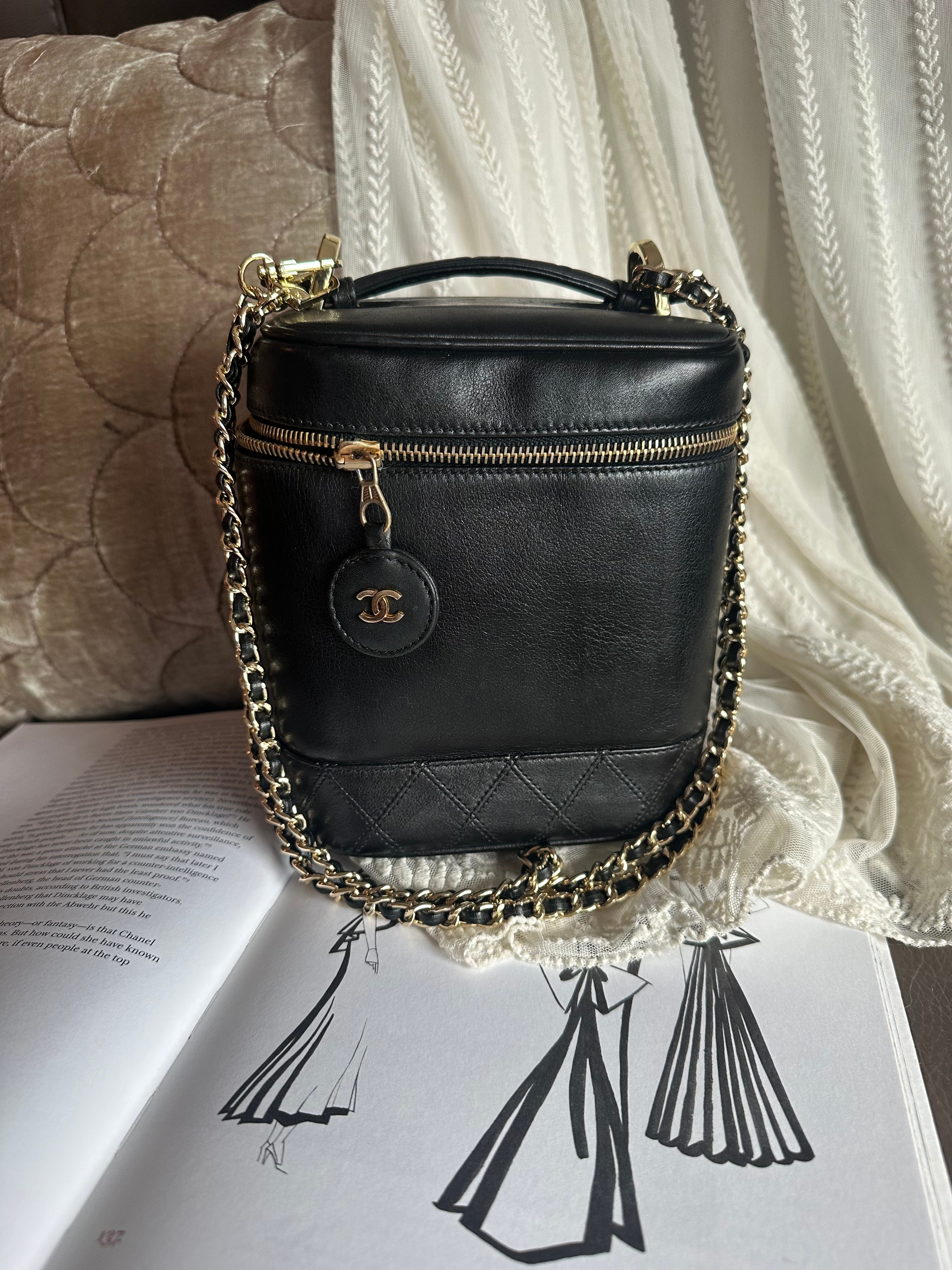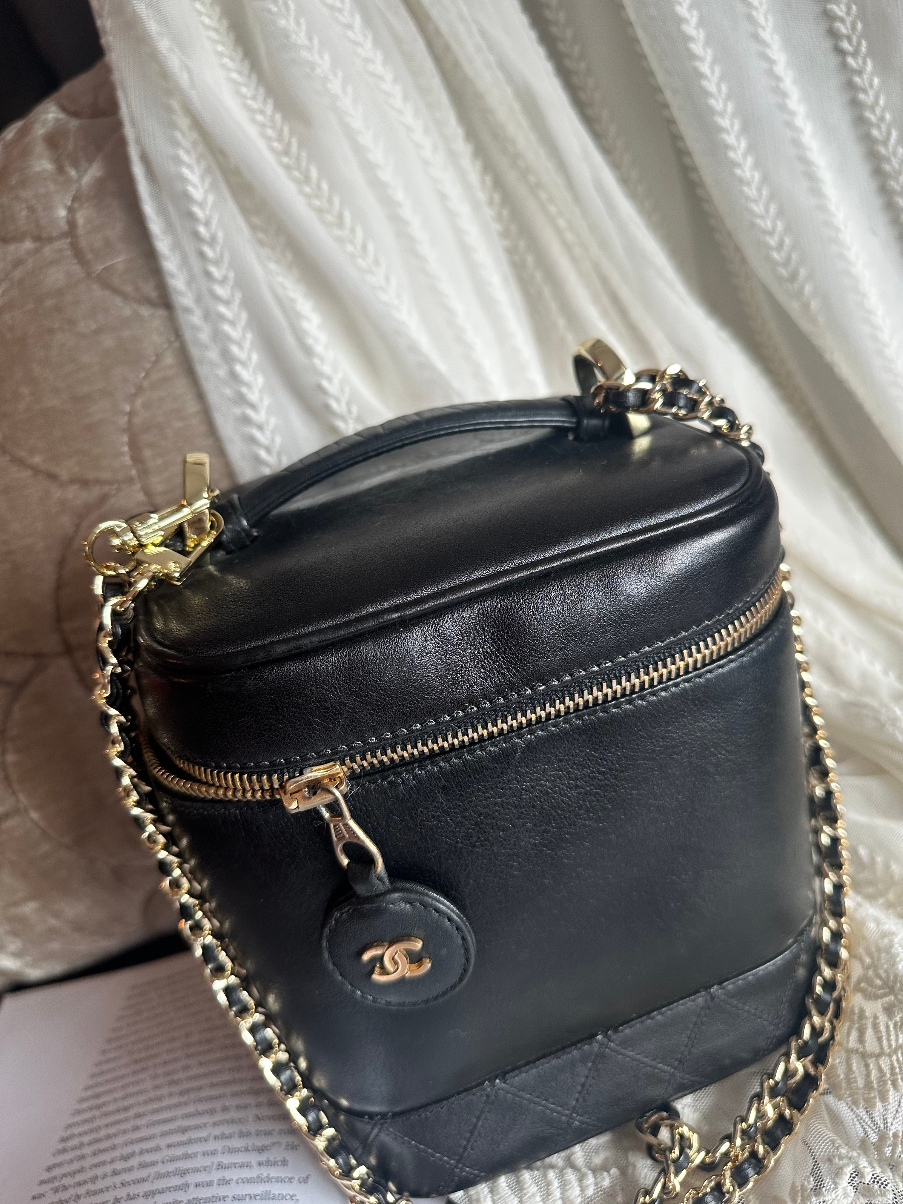 🇯🇵✈️尋日到港🔥再揾多只翻親都秒售vintage cc vanity 勁新淨 有貼有卡貼數字清晰可見 改裝的❤️後加左沒品牌鏈同扣即刻可以斜咩或者當腋下包用 容量多放到長銀包同電話 💙 💰5580 vintage chanel black vanity bag 尺寸:17x15x13cm 年份:96-97 配件:貼/卡 狀態:外觀95新/内93新 送可改裝成袋用扣一對/送冇品牌長鏈一條 以上是免費贈送原裝並沒有/ Item has been modified, installed non branded hook and non branded chain (全部可隨意拆除) vintage chanel black vanity case Dimemsions: 17x15x13cm Accessories :serial /card Condition:very good Item has been modified, installed non branded hook and non branded chain 🖤本店為香港零售管理協會會員/門市已開業9年連續多年正版正貨商戶2025編號 001176 付款方法:VISA / MASTER / AE / 銀聯 / UNION PAY /現金 /alipay ❤️門市提供恒生💳渣打💳滙豐💳AE 💳DBS 💳Citibank💳mox 信用卡✅免息分期✅ 📢本店只出售正版貨📢 ❤️歡迎親臨銅鑼灣門市😍 ❤️ 本門市已搬到銅鑼灣記利佐治街2-10號銅鑼灣地帶2樓237號鋪 Shop 237, 2/f, causeway place, 2 great george street, causeway bay