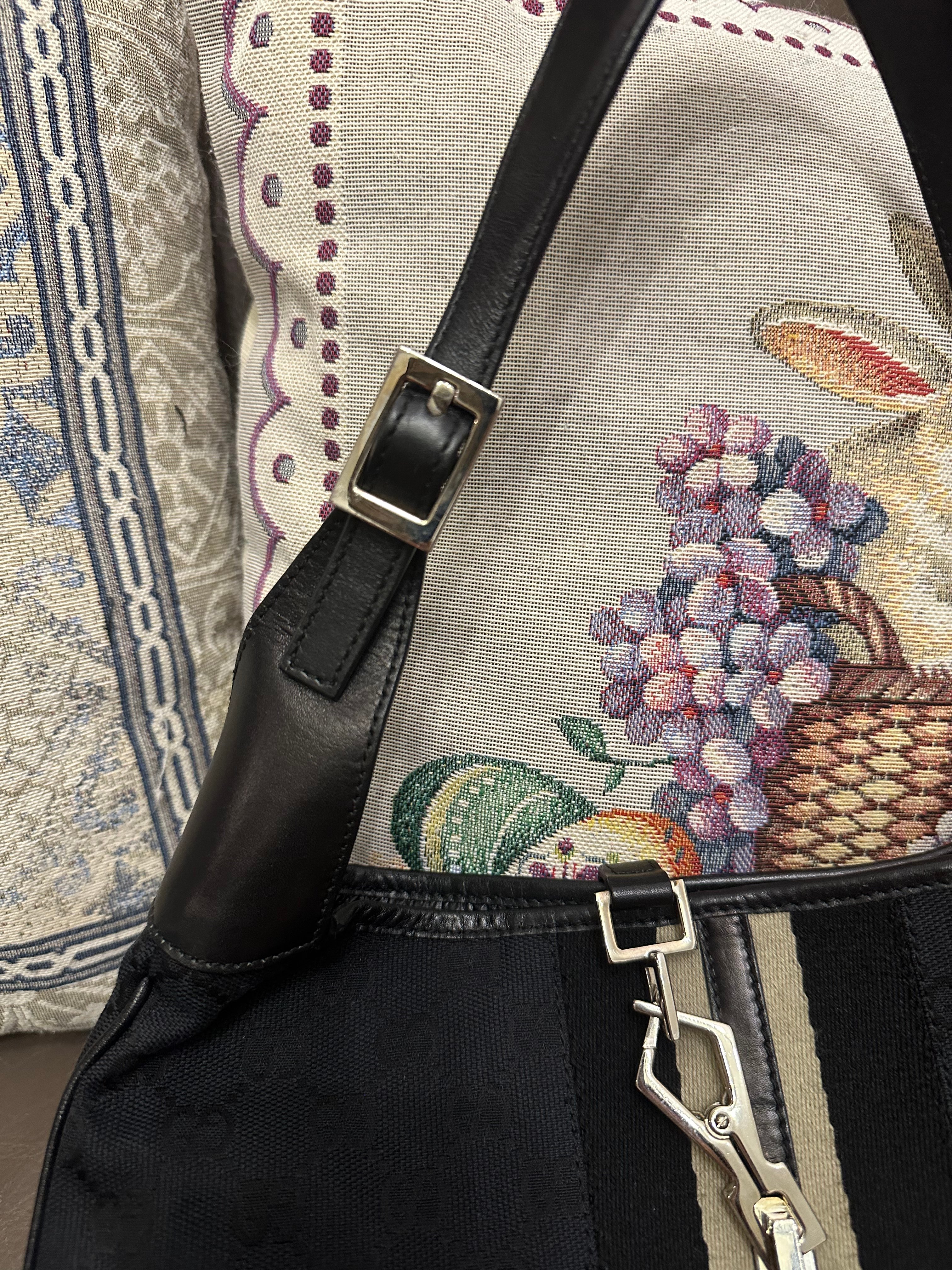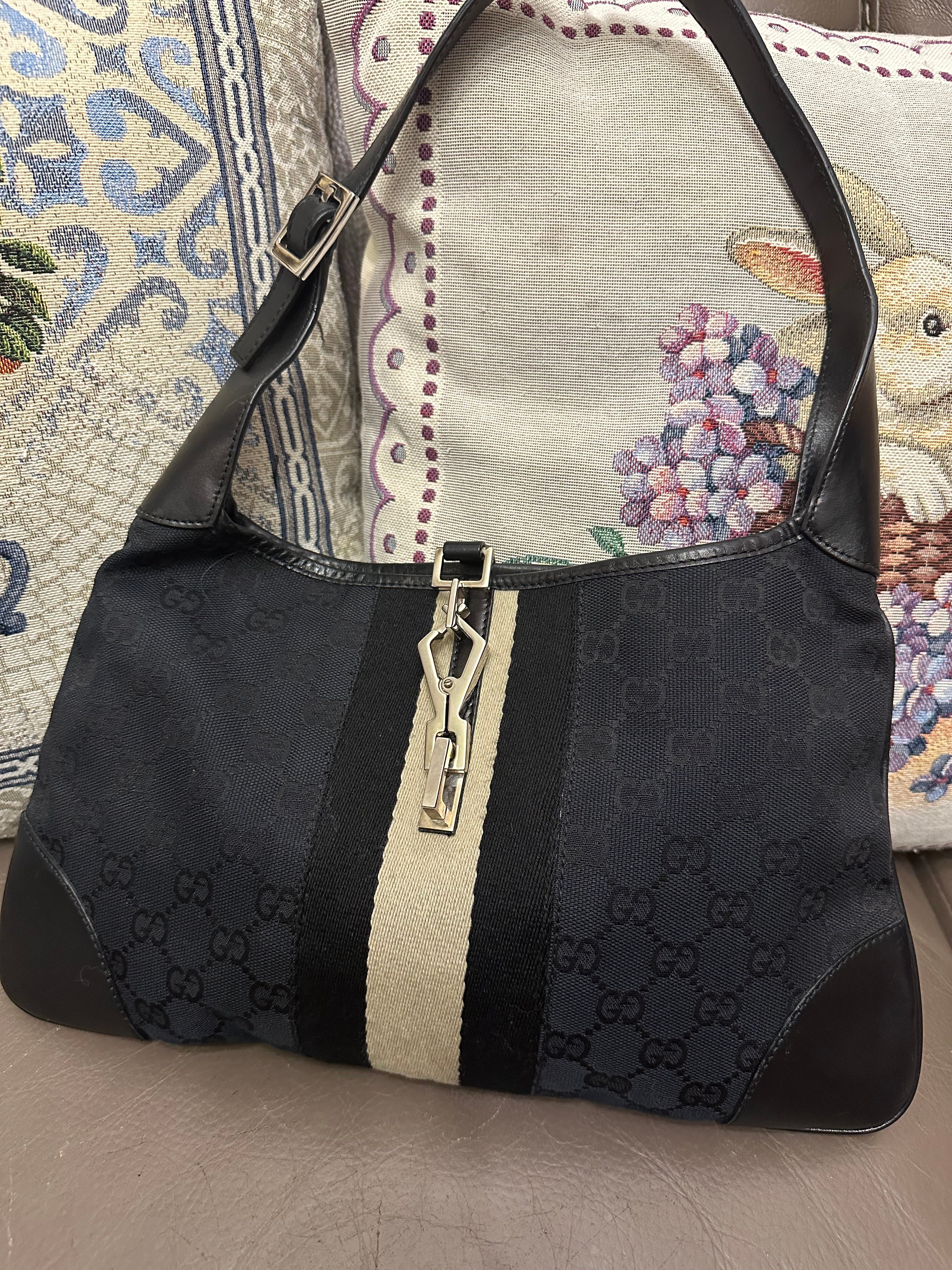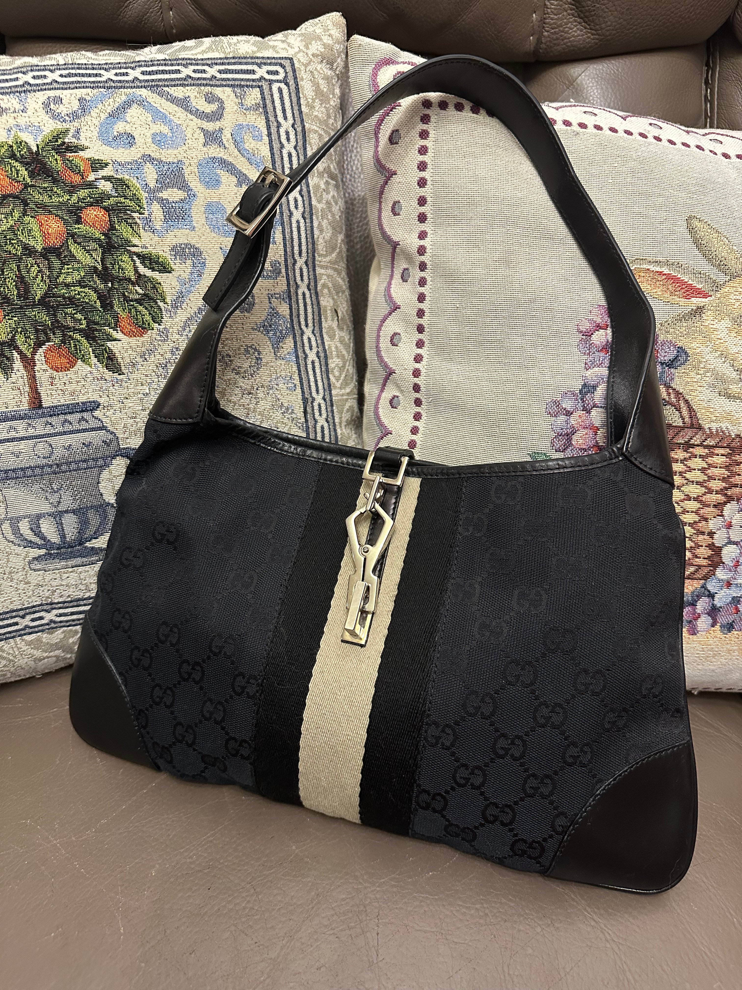 vintage gucci jackie bag ❤️新款己經復刻番哂❤️vintage 款顏色方面更加多元化❤️ Navy /black/beige 外觀咁多年來都保存到新淨 勁輕身 vintage gucci jackie bag 尺寸 :20x33x2 /strap 42cm 配件: 沒有 狀態外觀90新/袋內vintage jackie通病皮革位置浮起 vintage gucci jackie bag Dimensions:20x33x2 /strap 42cm Accessories : none Condition:outside very good /inside good with some sign of hse ❤️本店為香港零售管理協會會員/門市已開業9年連續多年正版正貨商戶2025編號001176 付款方法:VISA / MASTER / AE / 銀聯 / UNION PAY /現金 /alipay ❤️另提供 AE 信用卡12個月免息分期 /恆生信用卡12個月免息分期/hsbc 12個月免息分期/渣打12個月免息分期 📢本店只出售正版貨📢 ❤️歡迎親臨銅鑼灣門市😍 ❤️ 本門市已搬到銅鑼灣記利佐治街2-10號銅鑼灣地帶2樓237號鋪 Shop 237, 2/f, causeway place, 2 great george street, causeway bay 門市電話:27808868 WhatsApp :📞65230308
