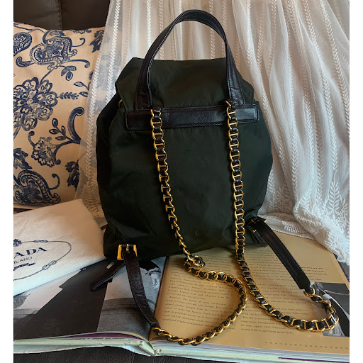 再一次返到勁罕有顏色❤️墨綠尼龍拼金鏈款背囊🎒經常秒售的一款🙈呢隻咁特別嘅顏色更加罕有 上次一番就有靚靚帶走左 90年代的一款🥺多年都保存良好 比上次同款同色更狀態好🥺 有塵袋 極罕 美品93%new vintage prada army green nylon brown leather gold chain backpack Dimensions: 24x28x12cm 配件:dust bag ❤️本店為香港零售管理協會會員/正版正貨商戶2022 編號 0947 付款方法:VISA / MASTER / AE / 銀聯 / UNION PAY /現金 /alipay ❤️另提供 AE /hsbc /恒生/渣打信用卡12個月免息分期 📢本店只出售正版貨📢 ❤️歡迎親臨銅鑼灣門市😍 ❤️ 本門市已搬到銅鑼灣記利佐治街2-10號銅鑼灣地帶2樓237號鋪 Shop 237, 2/f, causeway place, 2 great george street, causeway bay 門市電話:27808868 WhatsApp :📞65230308