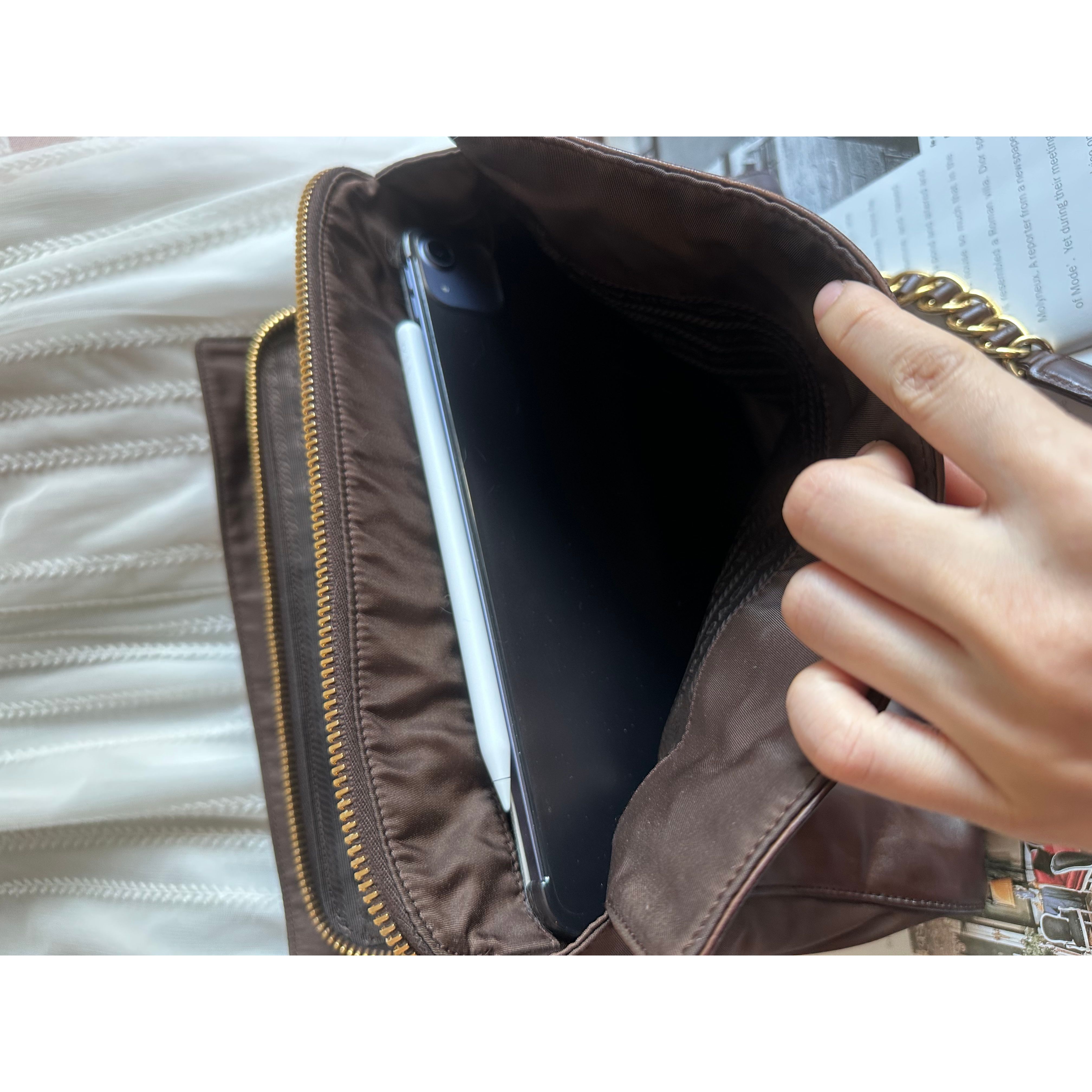 中古prada chain款皮拼尼龍深啡色咁耐以來先搵到第二隻 😆係罕有深啡色拼金鏈 非常少有重要拼金扣 尺寸放到iPad❤️❤️多年都保存到有卡 充滿復古感 稀小 88%new vintage prada brown leather /navas gold chain shoulder bag Dimensions :32x27x14cm/鏈每邊總長各75cm 配件: card $3980 ❤️本店為香港零售管理協會會員/多年正版正貨商戶2023 編號 2578 付款方法:VISA / MASTER / AE / 銀聯 / UNION PAY /現金 /alipay ❤️另提供 AE 信用卡12個月免息分期 /恆生信用卡12個月免息分期/hsbc 12個月免息分期/渣打12個月免息分期 📢本店只出售正版貨📢 ❤️歡迎親臨銅鑼灣門市😍 ❤️ 本門市已搬到銅鑼灣記利佐治街2-10號銅鑼灣地帶2樓237號鋪 Shop 237, 2/f, causeway place, 2 great george street, causeway bay 門市電話:27808868 WhatsApp :📞65230308